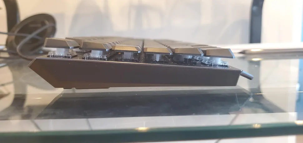 Если вы из тех, кто оценивает клавиатуру по звуку и щелчкам, то низкопрофильная клавиатура MSI Vigor GK50 (9500 рублей на момент написания статьи) покорит ваше сердце. Низкопрофильные переключатели Kailh Choc и плавающие колпачки клавиш обеспечивают тот опыт, которого жаждут любители механических клавиатур, по цене, которая выгодно отличается от цен на современном рынке.