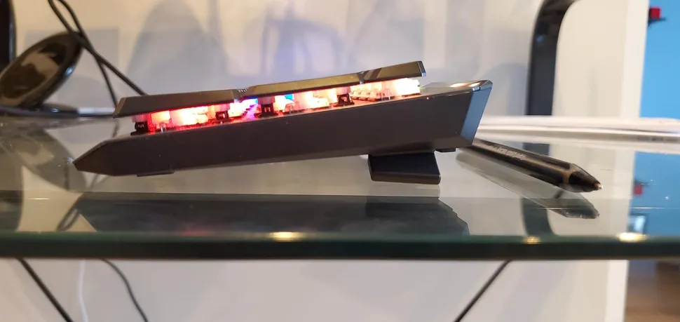 Благодаря низкопрофильным переключателям Kailh Choc компания MSI явно создавала Vigor GK50 для игр. Механические переключатели срабатывают при нажатии 1,5 мм и более чем способны выдерживать быстрое нажатие кнопок. Одно из отличий от низкопрофильных переключателей Cherry заключается в том, что здесь общий ход до упора составляет всего 3 мм, а не 3,2 мм. Кроме того, низкопрофильные переключатели Cherry Red и Speed срабатывают при нажатии 1,2 мм и 1 мм соответственно. Если вы очень требовательны к условиям или хотите свести количество поездок к минимуму, есть другие варианты.