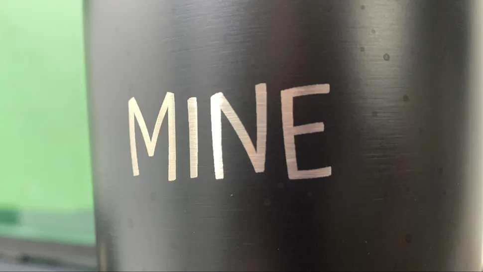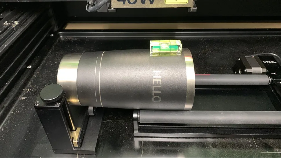 Я также хочу показать, насколько хорошо xTool справляется с гравировкой с помощью роторного инструмента. Я использовал пару металлических дорожных стаканчиков, которые купил в Walgreens: один для эксперимента, а другой в качестве подарка. Для роторного инструмента требуется подъёмник S1, чтобы поднять головку инструмента достаточно высоко над объектом.