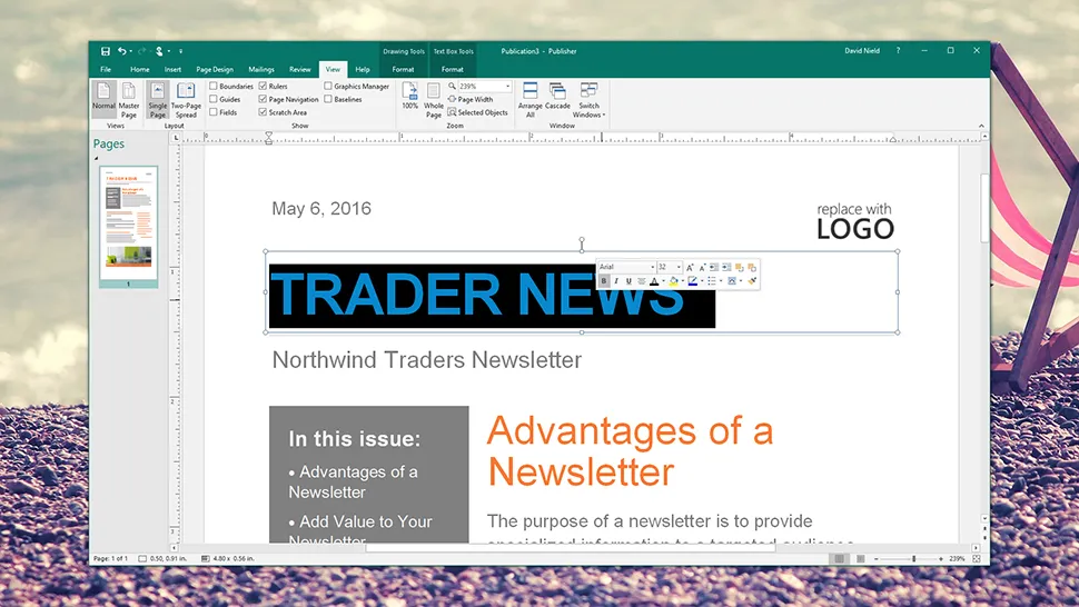 Барьер для входа в программу низкий, что делает Publisher одним из лучших настольных издательских программ для новичков и обычных пользователей, особенно если вы уже пользуетесь экосистемой Microsoft. Интерфейс удобный и простой. Начать работу с вашими творениями очень просто. Если вы пользовались другими программами Office, навигация по интерфейсу будет для вас естественной.