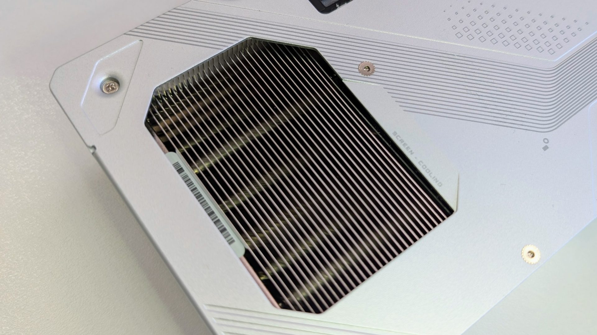 Под кожухом прячется массивная испарительная камера, толстые композитные медные трубки и фирменный радиатор Screen Cooling с вырезами на бэкплейте для сквозного продува.