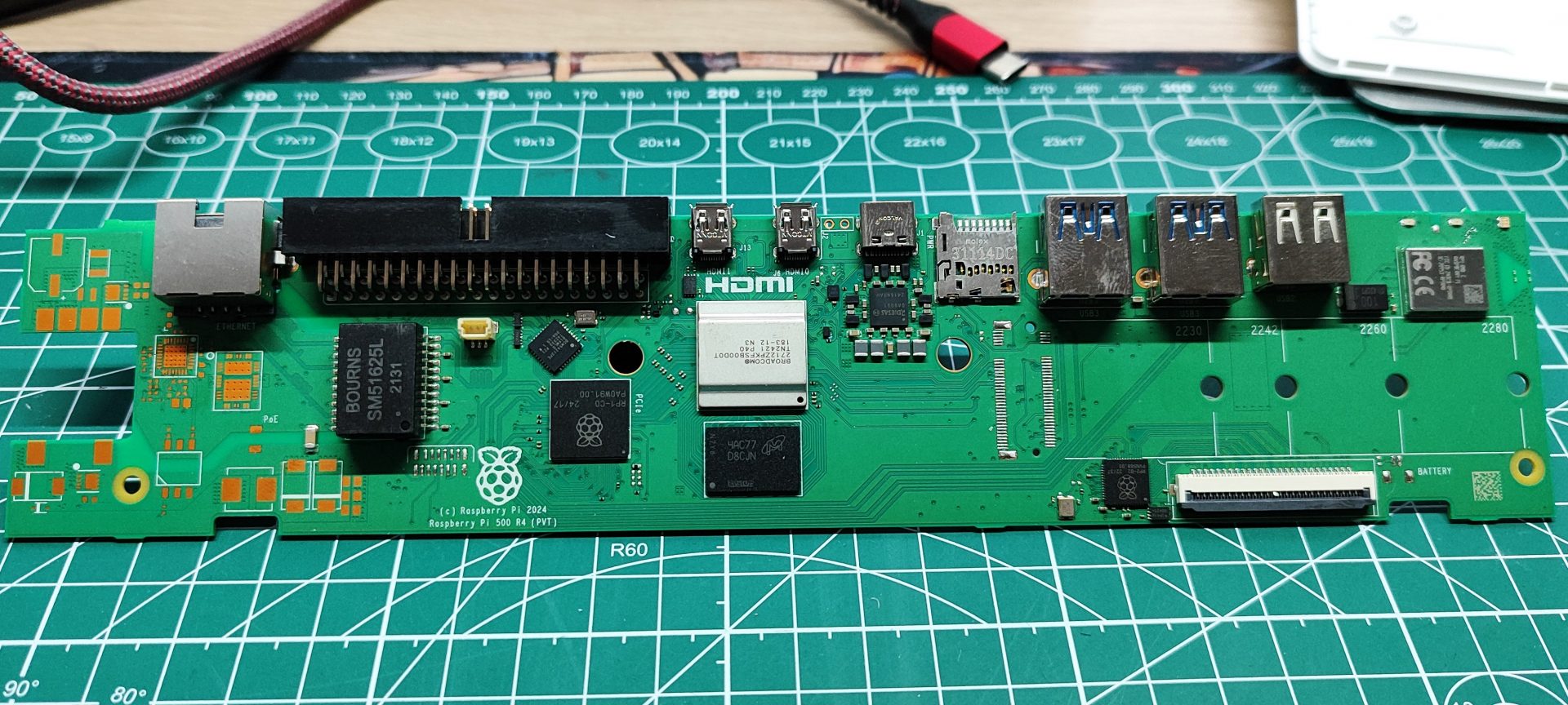Внимательные читатели заметят, что, поскольку Pi 500+ использует ту же конструкцию клавиатуры, что и предшественники, доступ к разъёмам CSI (камера) и DSI (дисплей) отсутствует. Взглянув на печатную плату, вы увидите, что на ней нет никаких разъёмов под шлейфы. Если вам действительно нужна камера, используйте USB веб-камеру. Для дисплеев предусмотрены два порта micro HDMI с поддержкой 4K60, так что с выводом изображения проблем нет.