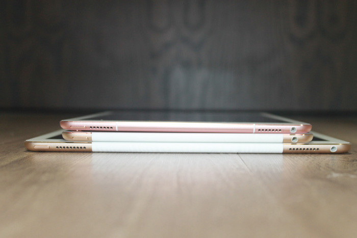 Причина тому понятна – большой iPad Pro весом в 700-900 граммов после двух тонких и легких iPad Air казался почти неподъемным. Судя по всему, Apple закладывала на эксперименты с форм-фактором полгода – именно столько понадобилось компании, чтобы представить iPad Pro 9,7 дюйма (назовем его «маленький iPad Pro»). Вес и размеры, идентичные iPad Air 2, сделали его, в частности, почти на миллиметр тоньше большого – 6,1 миллиметра.