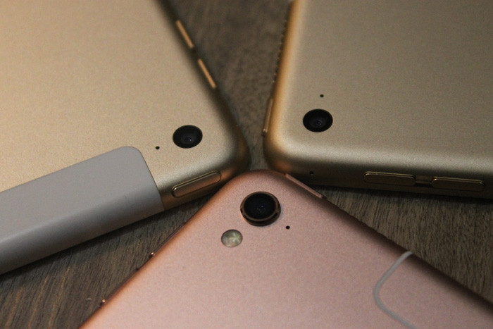 С точки зрения дизайна отличить маленький iPad Pro от iPad Air 2 могут несколько особенностей. Во-первых, это первый (и единственный пока) планшет, который Apple выпускает в цвете rose gold, в дополнение к темно-серому, серебристому и золотистому. Во-вторых, Apple отказалась от белой полосы на задней панели планшета, за счет чего она выглядит более цельной.