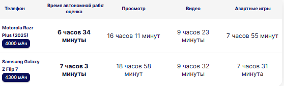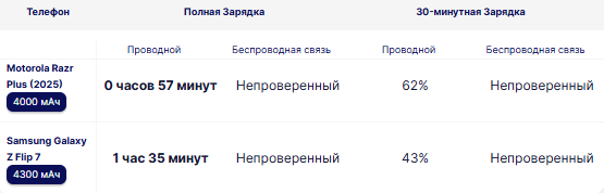 Motorola Razr Plus (2025) против Galaxy Z Flip 7: время автономной работы и зарядка