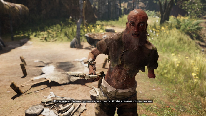 Задания мы получаем от подчас странных персонажей, и даже в сложившихся условиях разум поначалу говорит, что лучше бы держаться от них подальше. Отшельники, откровенные безумцы, загадочные шаманы – герои вышли даже более колоритными, чем в Far Cry 3 и 4, где атмосфера держалась на главных злодеях. Колоритности добавляет вымышленный язык, на котором общаются персонажи. Особенно забавно выглядят субтитры с намеренным игнорированием падежей и другими ошибками.