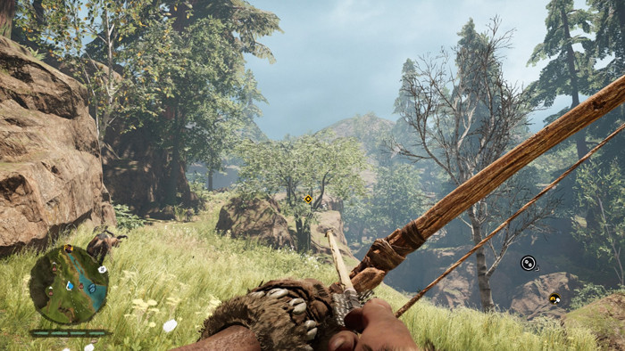 Из оружия у нас есть лук, копье, дубинка и ловушки. Они создаются из подручных материалов, так что игнорировать собирательство не выйдет. Дубинки быстро ломаются о крепкие головы аборигенов и животных, копья тоже не особо прочные. В запасе нужно постоянно иметь нужные материалы для создания новых предметов, потому как оказаться за пределами своего поселения без оружия – значит фактически приговорить героя к смерти. Практически каждая живность пытается вас убить. Хищники чертовски быстрые и проворные, убежать от них трудно – проще вступить в бой. Вражеские племена тоже могут задать жару. У противников, между прочим, осталось деление на «снайперов» (лук вместо винтовки), «танков» (ходят в крепкой защите с огромной булавой) и другие подвиды – все в точности как в прошлых играх серии.