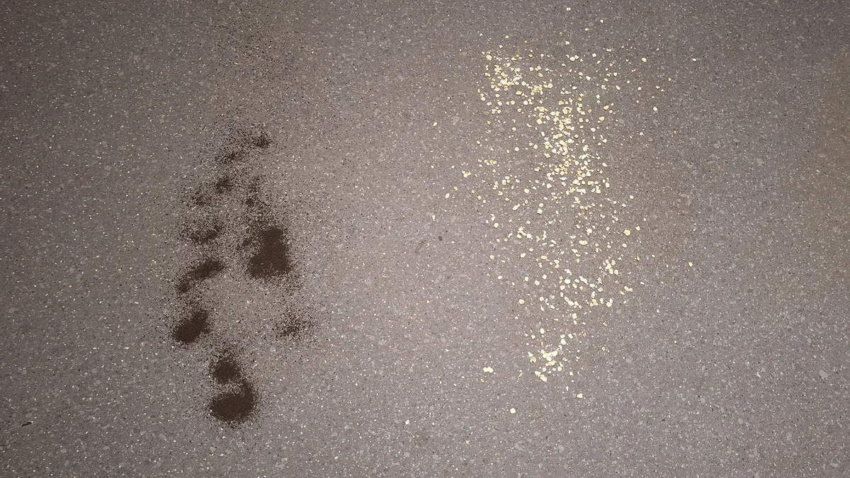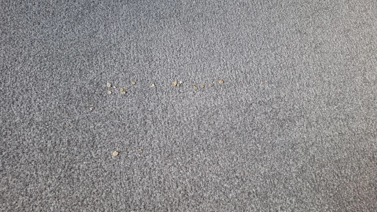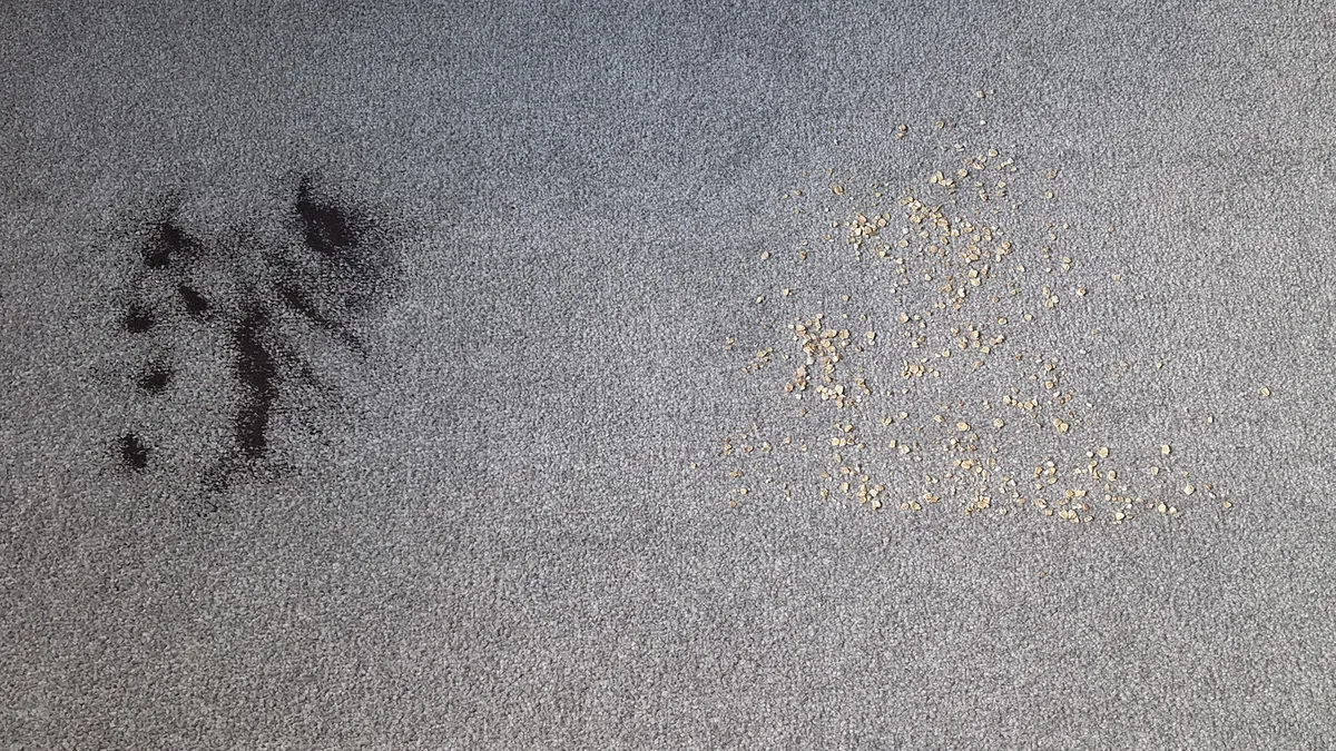 Я провел одну уборку в режиме Турбо, и робот Roborock Saros Z70 убрал почти весь овес и большую часть чая, оставив лишь немного рассыпанного в волокнах ковра. (Тест с чаем намеренно очень сложен.) Затем я повысил настройку робота-пылесоса до Макс для второй уборки, и он всосал все, кроме одной овсяной хлопья и нескольких частиц чая. Это отличный результат.