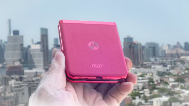 Хотя нам нравится стиль Razr Plus, мы считаем, что базовый Razr имеет лучшие цветовые решения, и нам очень понравилась отделка из так называемой веганской кожи. Она отлично ощущается, особенно когда этот телефон закрыт. Кроме того, она выглядит фантастически во всех цветах Pantone, которые выбрала компания Moto. Хотелось бы иметь больше вариантов искусственной кожи и, возможно, лучший выбор цветов для Razr Plus. Viva Magenta — это интересно… но, возможно, чересчур.