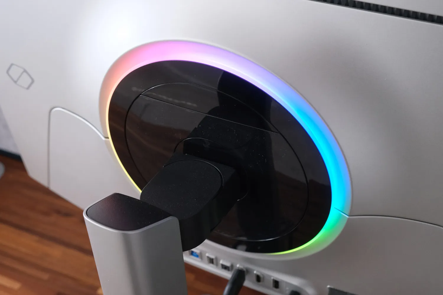 Я рад, что Samsung сохранила подсветку Infinity Core на задней панели. Меняющее цвет светодиодное кольцо мягко освещает всё, что находится за монитором, и в меню можно выбрать один из множества различных режимов. Подсветка могла бы быть немного ярче — она особенно заметна, когда вы играете в темноте.