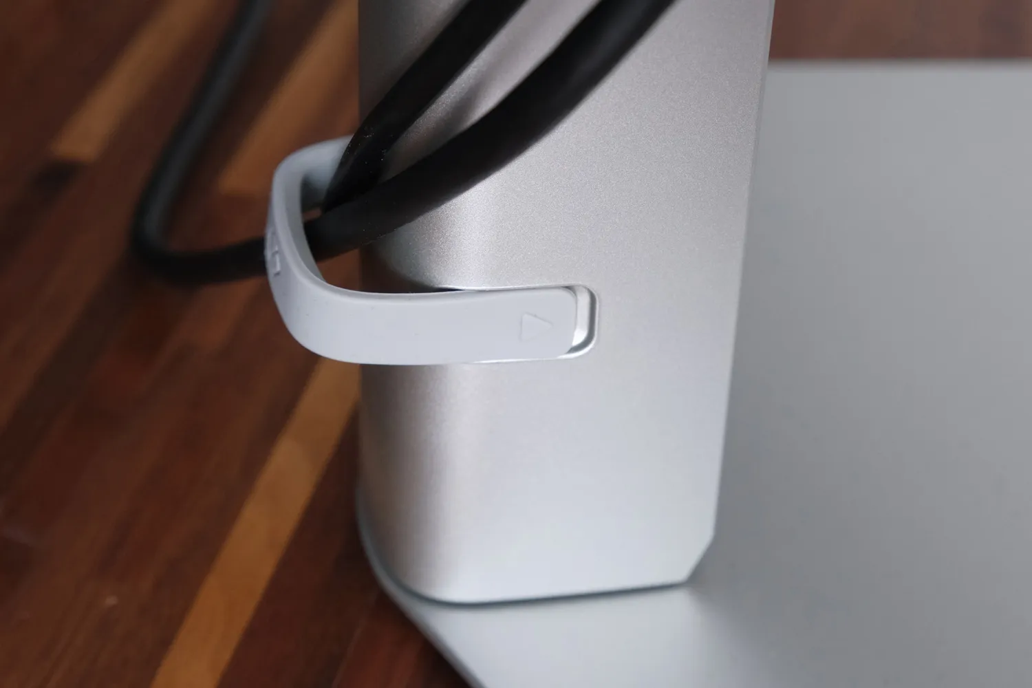 Сборка подставки занимает всего несколько секунд и не требует отвёртки. Покрутите здесь, закрепите там, и всё готово. Вертикальная часть сделана из пластика с металлическим сердечником, а плоская часть (которую вы видите больше всего, сидя перед экраном) — металлическая. По ощущениям роскоши она на световые годы опережает конкурентов из чёрного пластика. Я редко передвигаю монитор, но те, кто это делает, оценят его лёгкость.