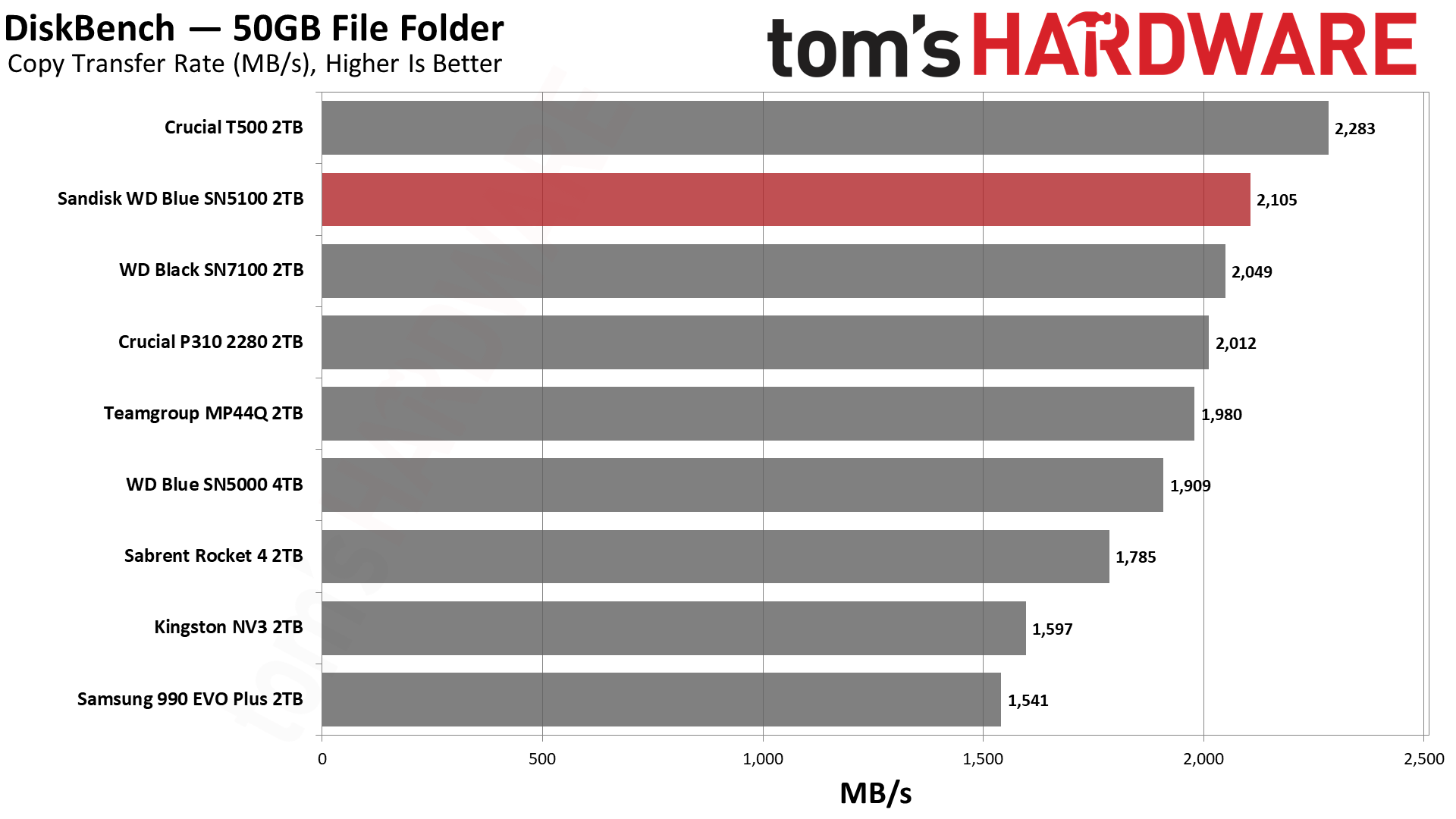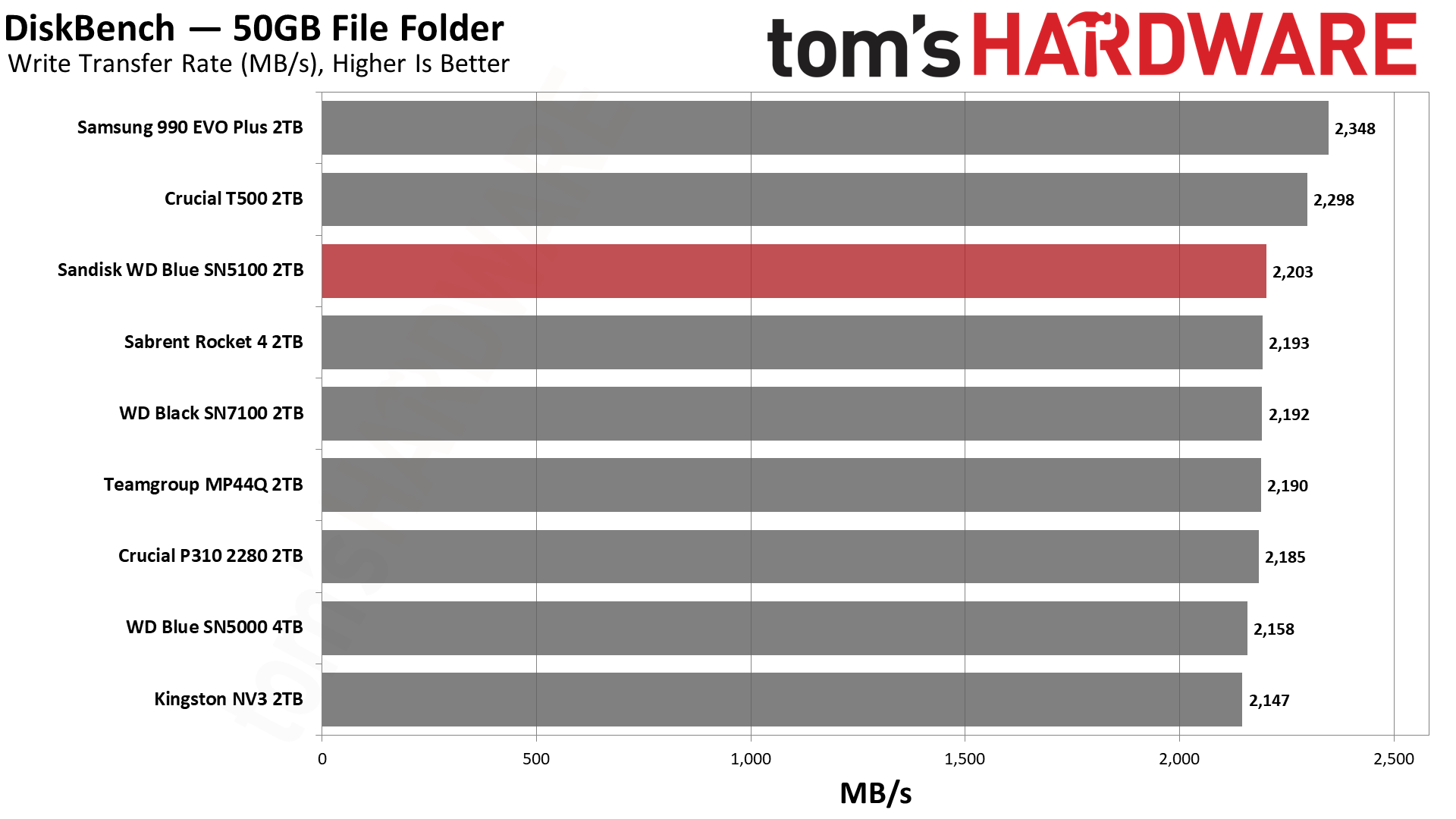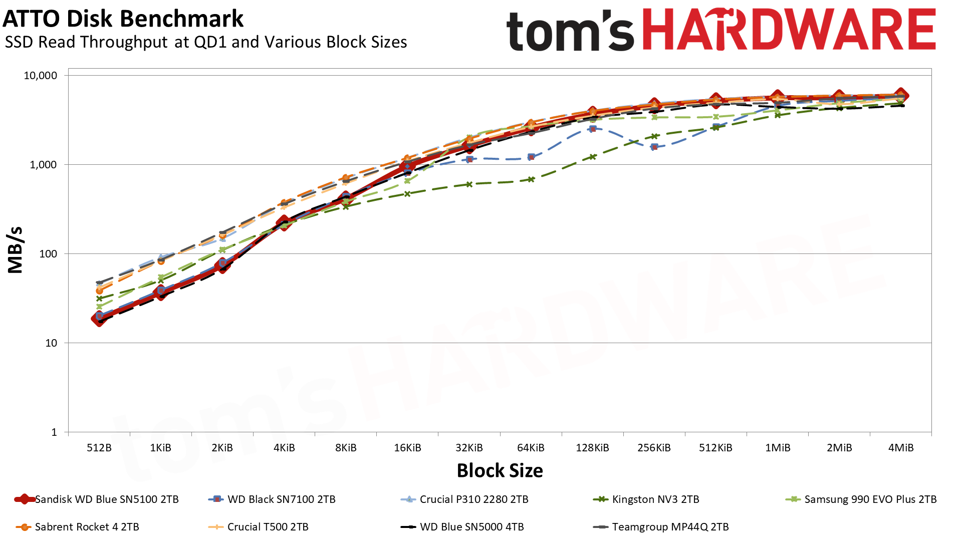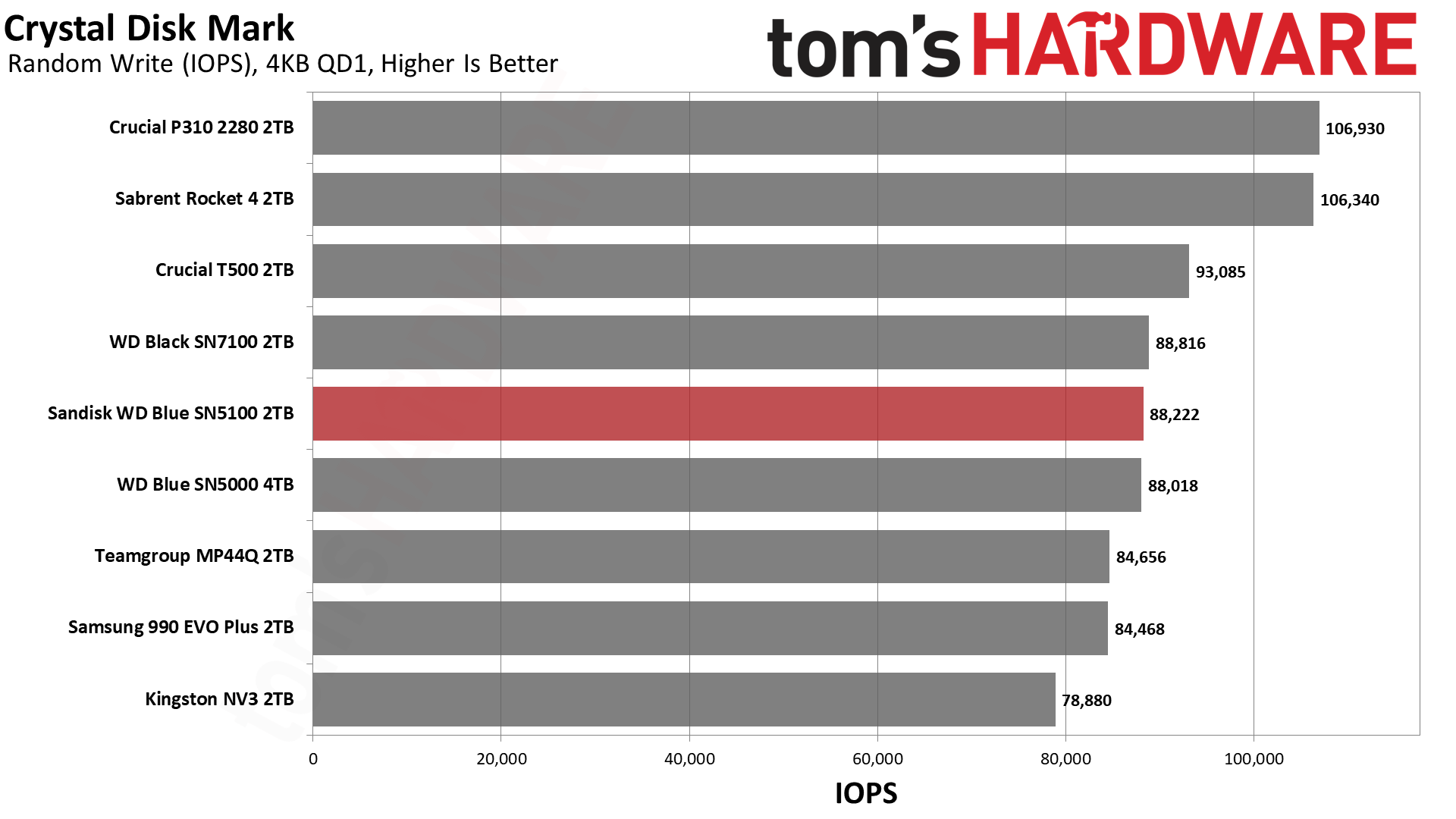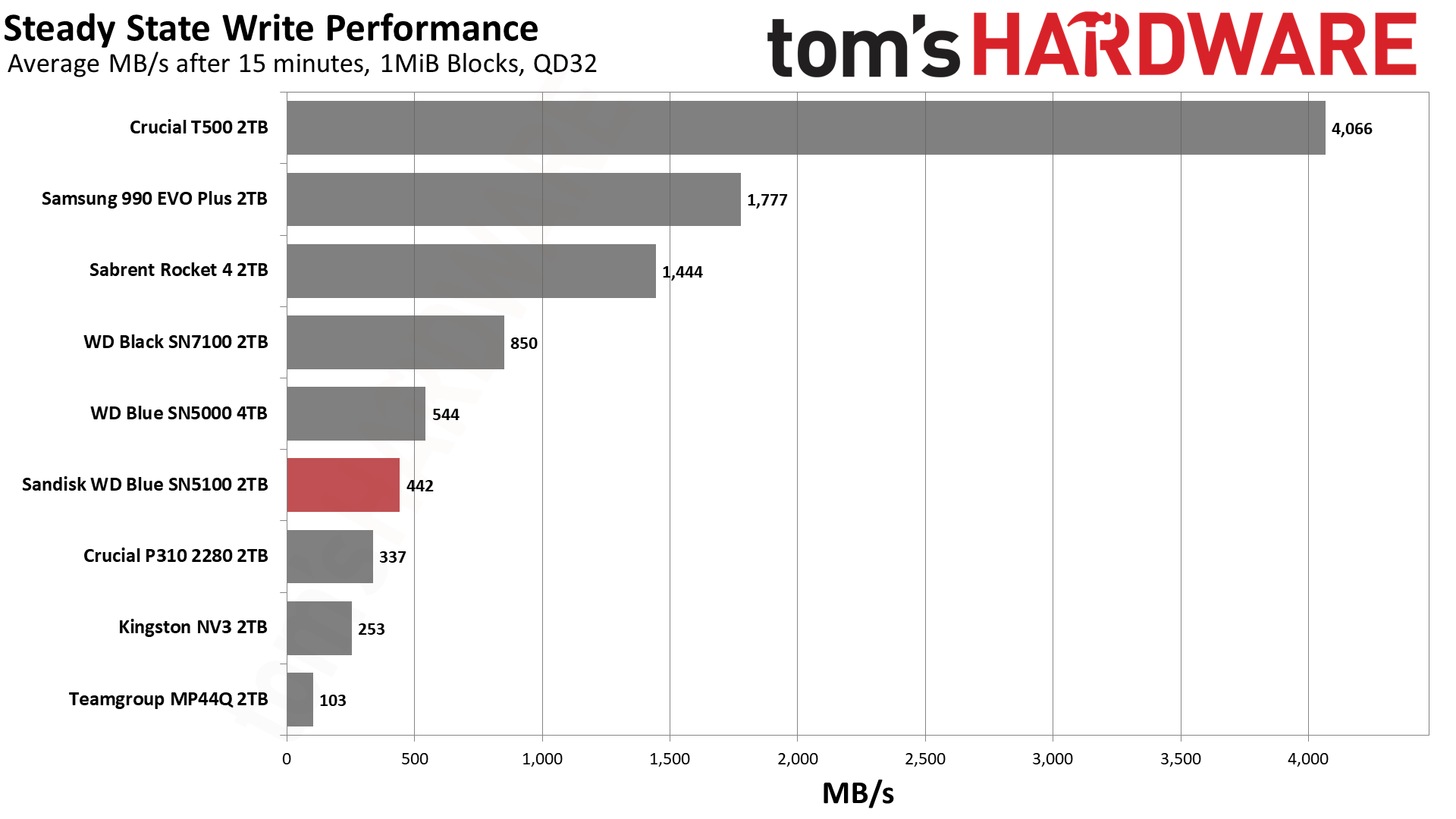 Важно понимать, что перед тестированием мы подготавливаем диски для получения более реалистичных данных. Если ваш диск используется нечасто и на нем много свободного места, SN5100 покажет лучшую производительность в своем классе. В противном случае он может опуститься ниже в нашем рейтинге. Это стоит учитывать при покупке, поскольку вы можете сэкономить значительную сумму по сравнению с T500 при практически идентичных возможностях в большинстве случаев.