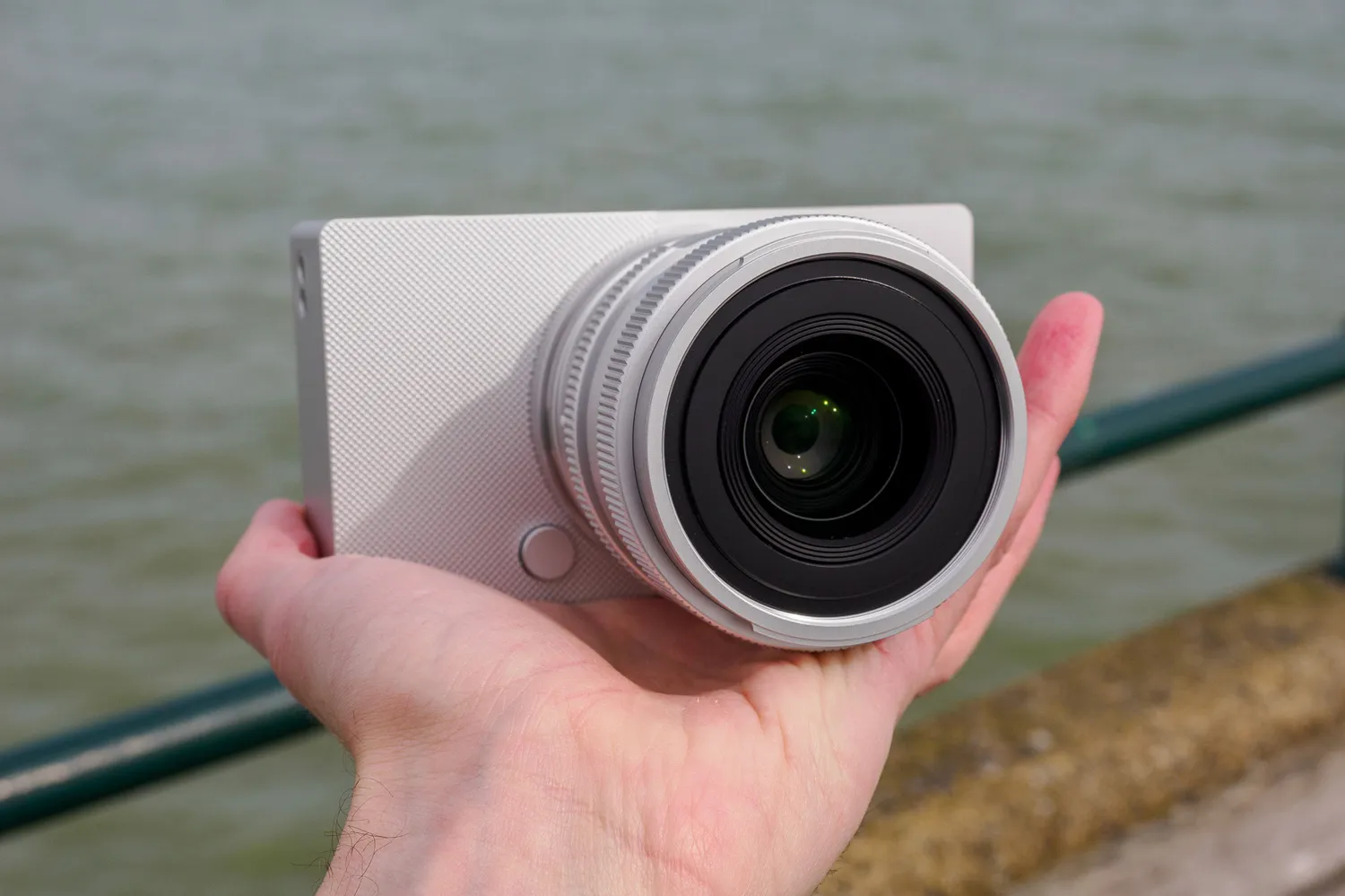 Однако эти острые линии не делают камеру эргономичной. Не за что ухватиться, кроме текстурированной передней панели и небольшого выступа для большого пальца. Даже стандартный ремешок для камеры не подходит. Есть место для небольшой петли на запястье, но в моём образце Sigma её не предусмотрела, и я постоянно боялся уронить камеру на асфальт.