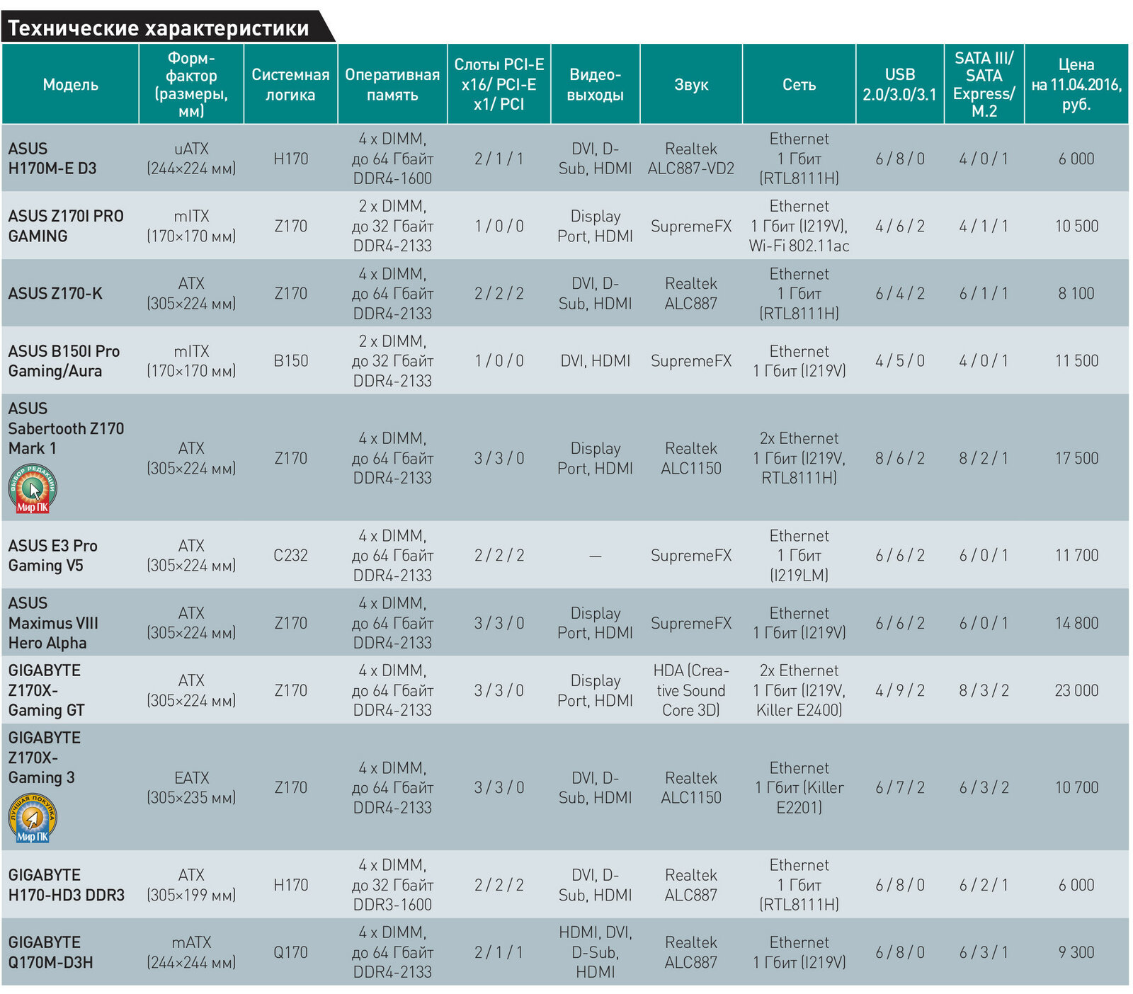 Представленным в 2015 г. процессорам Skylake-S под LGA1151 потребовалась новая линейка системных плат. С момента анонса прошло почти полгода, и сейчас в магазинах можно встретить полный спектр предложений любых формфакторов — от mITX до EATX. В данной статье представлены 11 моделей.