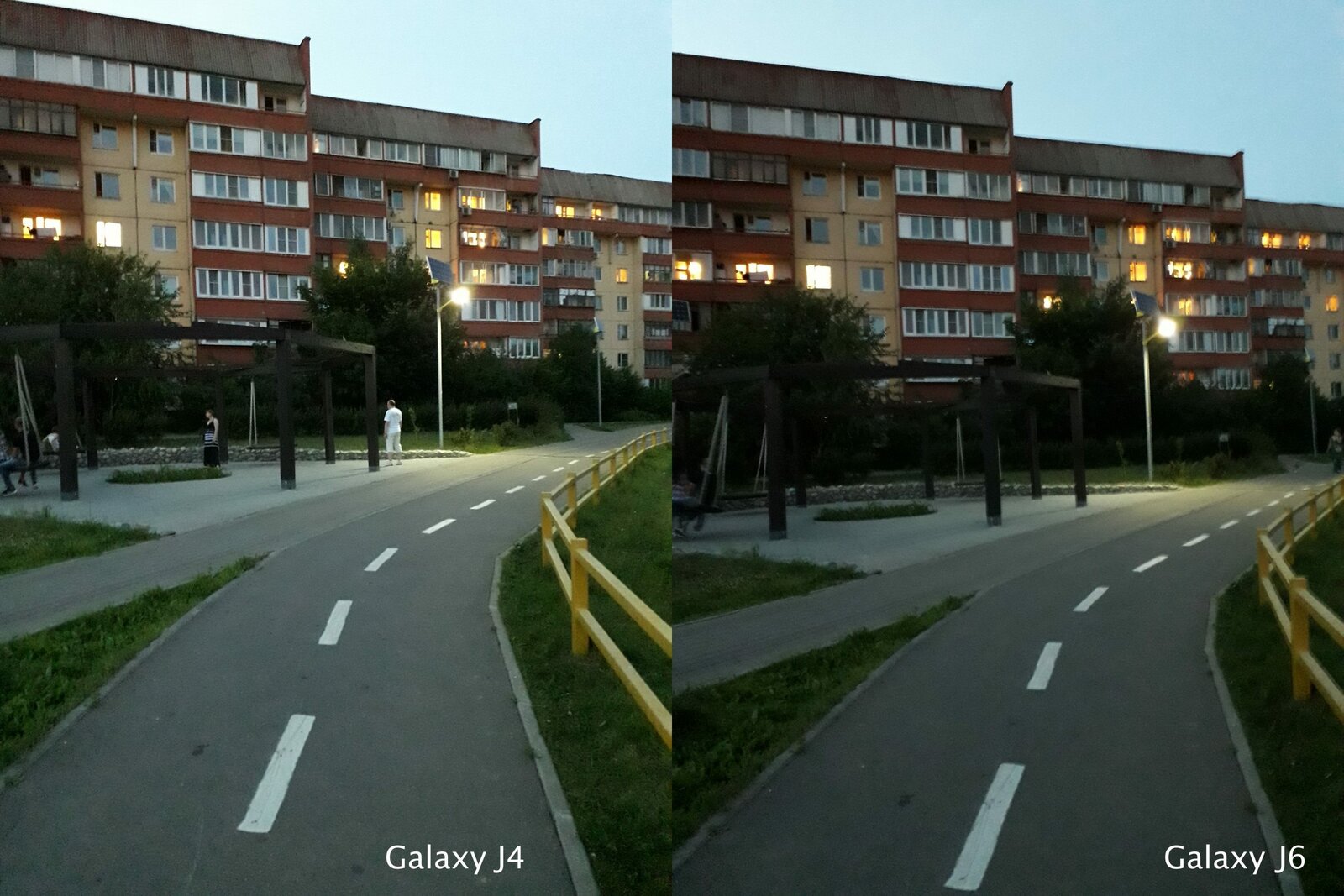 Как и в других бюджетниках южнокорейской компании, камера неплохо снимает днем, но абсолютно не приспособлена к съемкам в условиях плохой освещенности. Фотографии в сумерках и ночью получаются с большим количеством шумов и выглядят откровенно плохо. Примеры фото с обоих смартфонов вы можете посмотреть ниже.