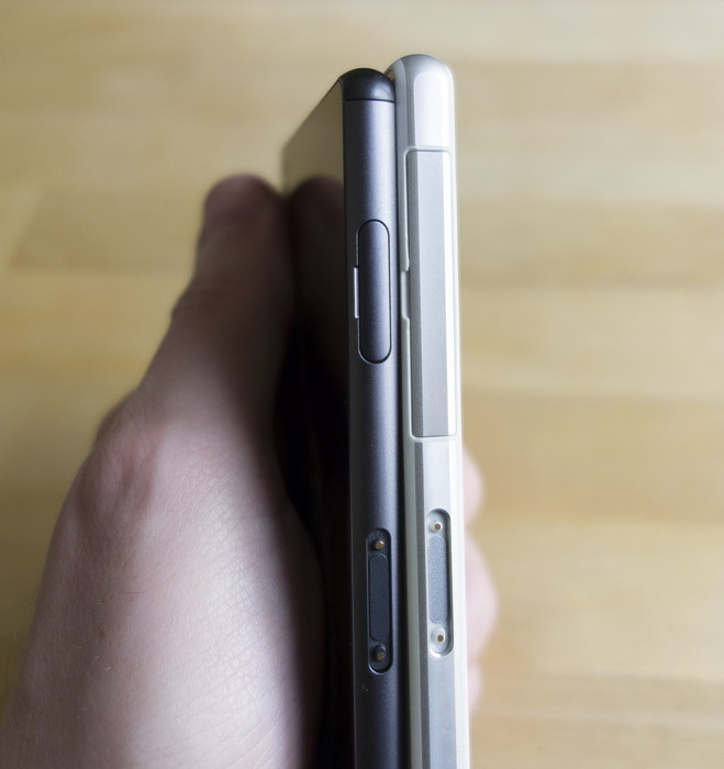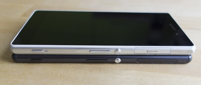 К чему я это все пишу? Да к тому, что Xperia Z3 – это ровно тот же самый Xperia Z2, только корпус чуть тоньше, а борта чуть более сглаженные. И всё. Сходство настолько велико, что когда оба аппарата лежат на столе экраном вниз, я не всегда могу точно определить – кто из них кто. А когда беру в руку Z2 или Z3 в комнате с небезупречным освещением, тоже не сразу соображаю – за что ухватился. Приходится несколько раз проводить пальцем по бокам, чтобы опознать модель наверняка – у Z3 бока гладенькие.