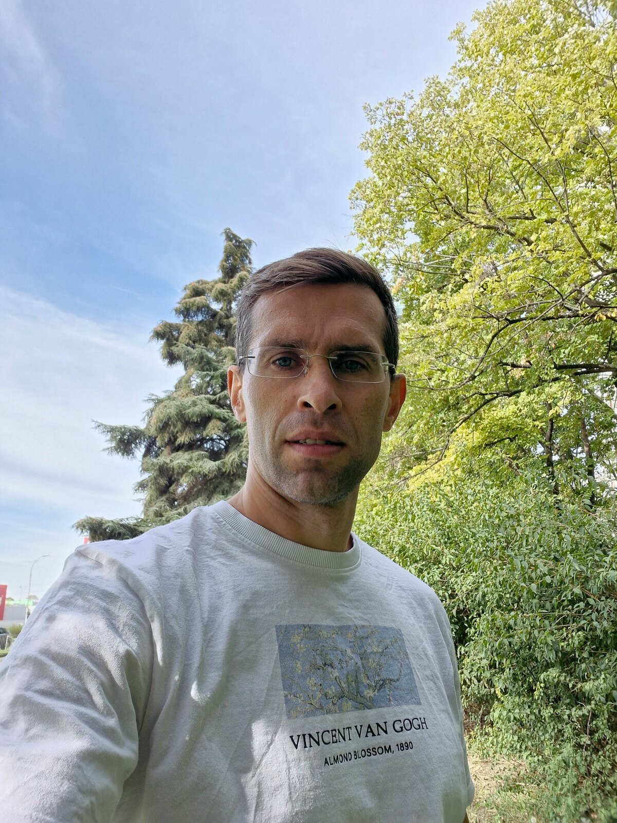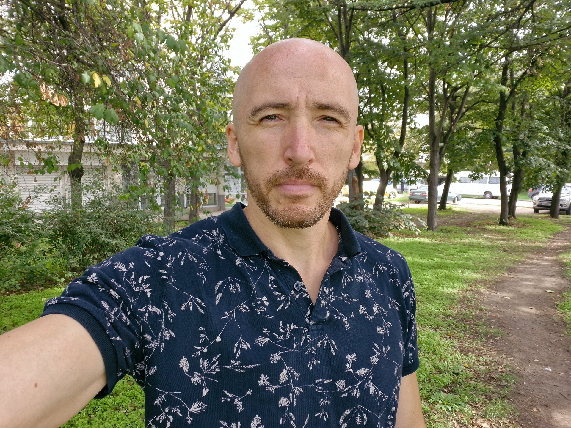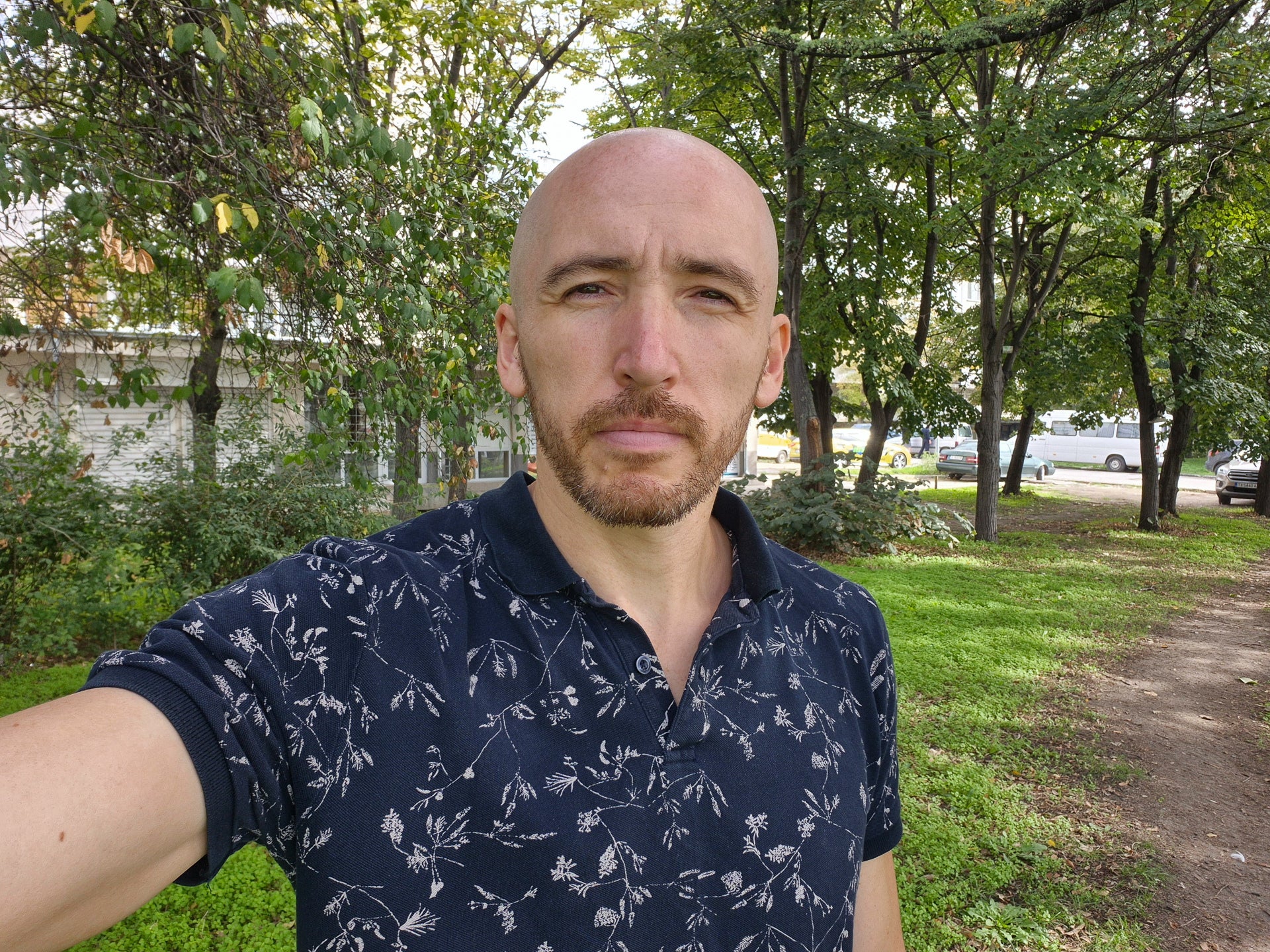 Предполагается, что селфи-камеры должны быть одинаковыми, но камера на S24 FE обеспечивает гораздо более качественное изображение. Цвета не только более естественные, но и листья деревьев на заднем плане более чёткие, а «ореол» вокруг них меньше. Компания Samsung определённо поработала над улучшением работы HDR, из-за плохого использования которого и появляются «ореолы».