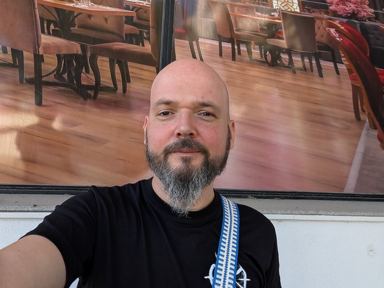 Оба телефона делают довольно резкие селфи с хорошими цветами и тоном кожи. Но контраст и динамика на iPhone 16 Pro Max выше. При прямом сравнении кажется, будто на фото с Pixel наложено полупрозрачное покрывало.