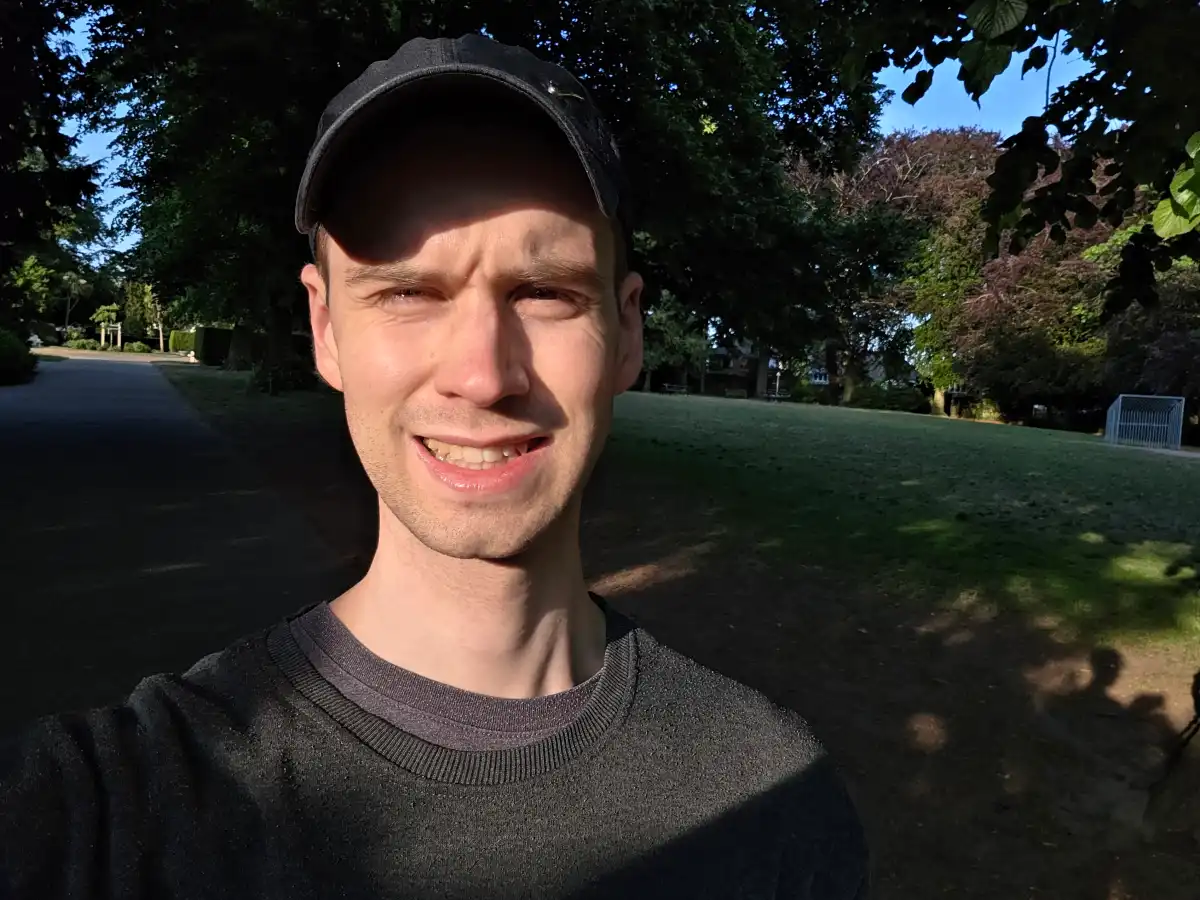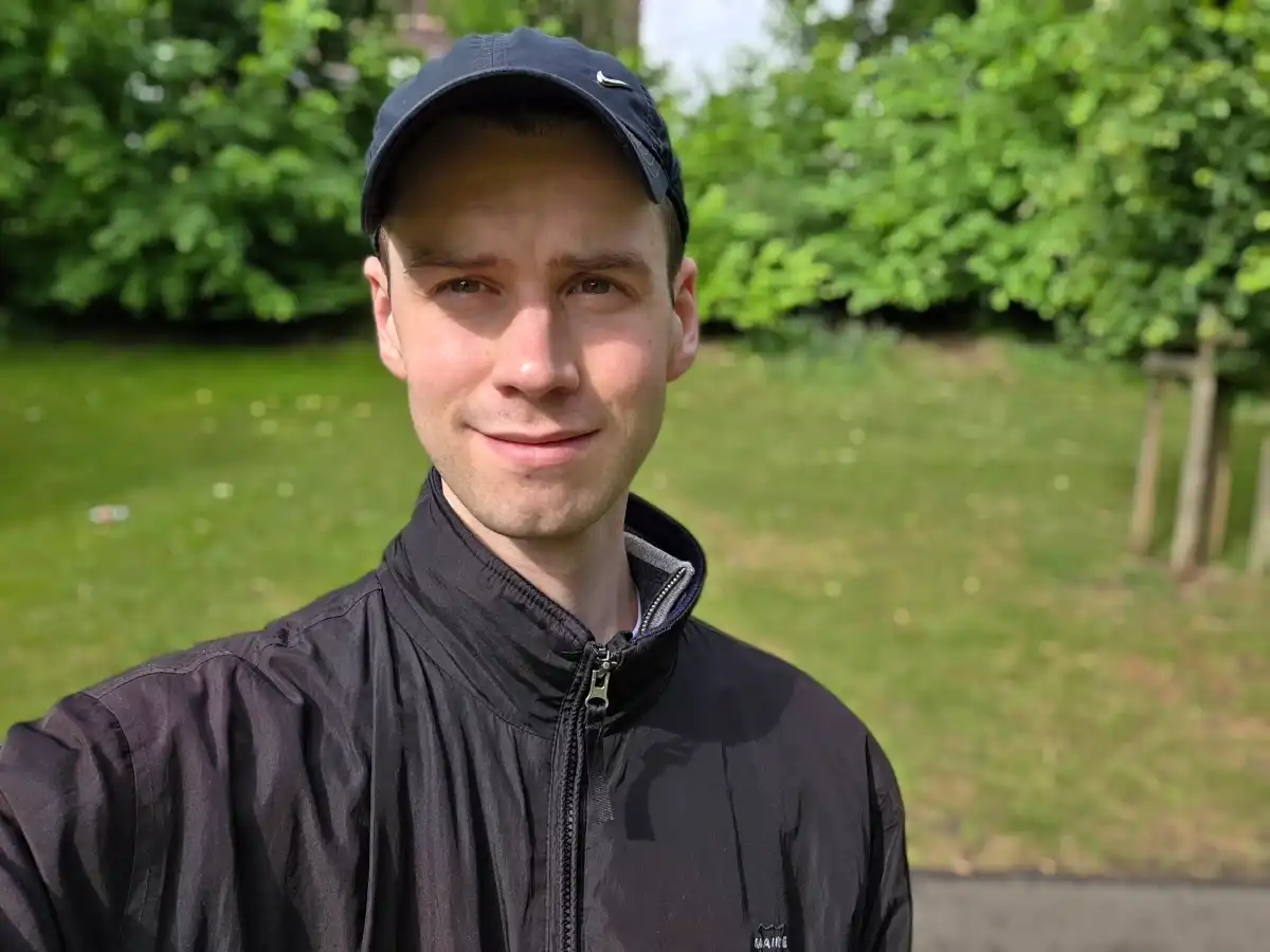 Как оказалось, фронтальная камера на 12 Мп лучше справляется с портретной съёмкой. Она такая же, как и на всех других телефонах S25, и позволяет делать чёткие селфи, которые хорошо передают мой тон кожи. Есть возможность немного обрезать кадр, чтобы вместить больше людей, но не заблуждайтесь, это далеко не сверхширокоугольный объектив.