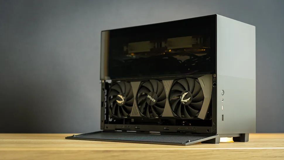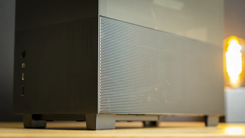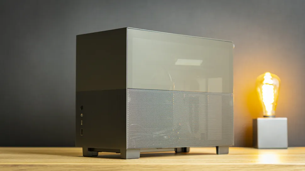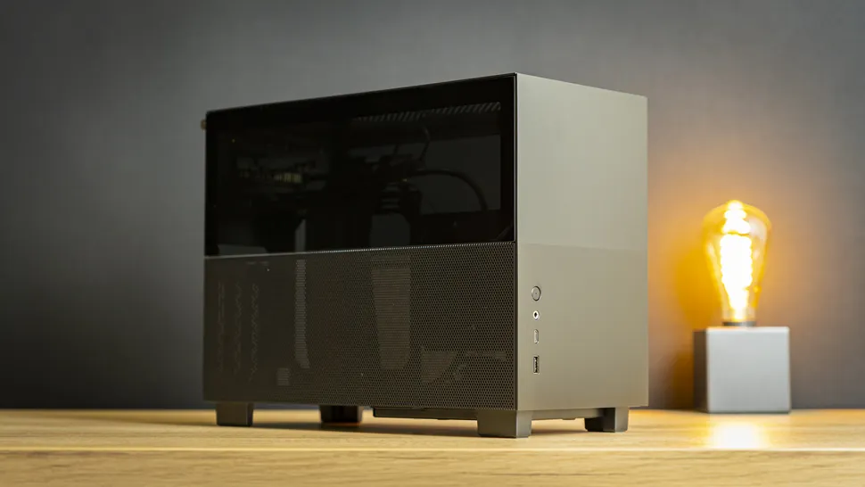 Q58 от Lian Li способен уместить высокопроизводительную систему в небольшую 14,3-литровую «обувную коробку» формата ITX. А благодаря наполовину стеклянным, наполовину сетчатым панелям он отлично справляется с охлаждением.