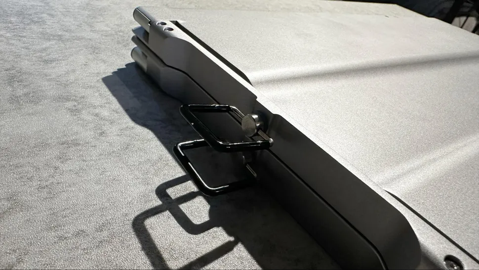 Однако для дополнительной устойчивости на задней части левого внутреннего клапана установлена регулируемая подставка, которая выдерживает дополнительный вес LK14. Подставка выдвигается из внутреннего клапана и может перемещаться вверх или вниз по углублению, что позволяет подобрать идеальный угол наклона.