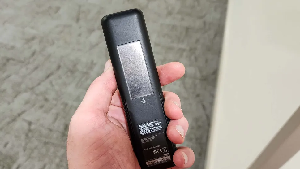В QN90D используется тот же пульт дистанционного управления SolarCell, который был стандартным для телевизоров Samsung на протяжении последних нескольких поколений. Крошечная солнечная панель на задней панели означает, что вам не придётся беспокоиться о замене батареек — просто положите пульт лицевой стороной вниз под прямые солнечные лучи (или под электрическое освещение, если вас не смущает более медленная зарядка). Вы даже можете отслеживать уровень заряда пульта в меню телевизора.