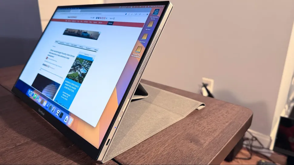 Компании ViewSonic удалось создать универсальный портативный монитор VG1656N. Он оснащен большой 16-дюймовой IPS-панелью с разрешением 1920 x 1200 и имеет в комплекте чехол Smart Cover. Чехол обеспечивает достаточную защиту дисплея, когда он не используется, и может служить регулируемой подставкой для портретного или альбомного режима.