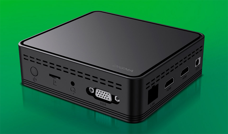 Особенность модели в небольшой высоте – меньше, чем у других мини-ПК в данном рейтинге. За счет этого компьютер удобнее крепить к задней части монитора – получившуюся конструкцию получится придвинуть на сантиметр-полтора ближе к стене. Если же говорить о железе, то у Rombica Horizon J4 GKJ442D все типично для устройства с такими цифрами на ценнике: процессор Intel Celeron J4125, 4 Гбайт ОЗУ и SSD на 256 Гбайт. Для игр не пойдет, для офиса – вполне.