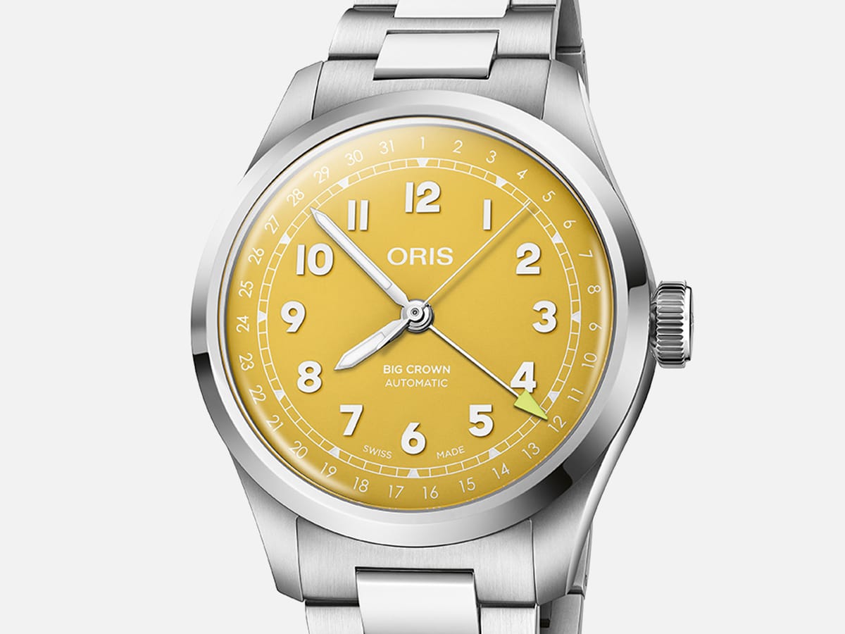 Ещё одна бюджетная модель — Oris Big Crown Pointer Date.Часы Oris Big Crown Pointer Date с жёлтым, синим или сиреневым циферблатом — это простая модель без излишеств, именно то, что мы все любим и ожидаем от Oris.Как бы ни были хороши синие или сиреневые модели, жёлтая мне действительно нравится.Смогу ли я носить её?Вряд ли, но я очень хочу попробовать.А за 2000 швейцарских франков вам будет трудно найти другую модель Watches and Wonders, которая так же легко ударит по вашему кошельку, как Oris Big Crown Pointer Date.