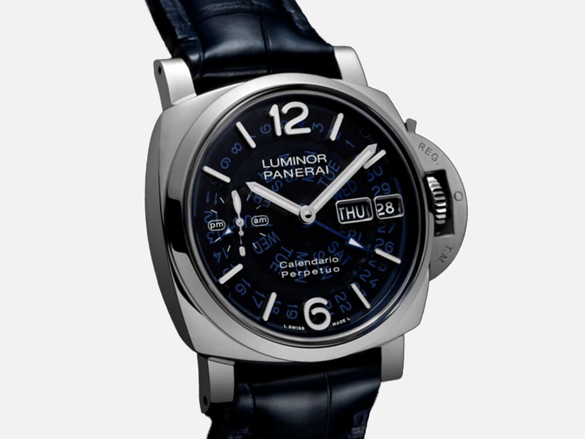 Компания Panerai представляет модель Luminor Perpetual Calendar GMT PAM01575.Корпус из сплава Platinumtech — платинового сплава, который, по заявлению Panerai, на 40% твёрже и устойчивее к царапинам, чем обычная платина, — и тёмно-синий сапфировый циферблат делают модель Luminor Perpetual Calendar GMT PAM01575 технически и эстетически впечатляющей.Следует отметить несколько ключевых особенностей.Чтобы узнать, какой сейчас месяц и год, а также сколько дней осталось до конца срока службы батареи, вам нужно перевернуть часы, чтобы прочитать информацию на задней крышке.Это не так уж важно, ведь я сомневаюсь, что вы каждый день проверяете, какой сейчас месяц.В остальном — высший балл с моей стороны.