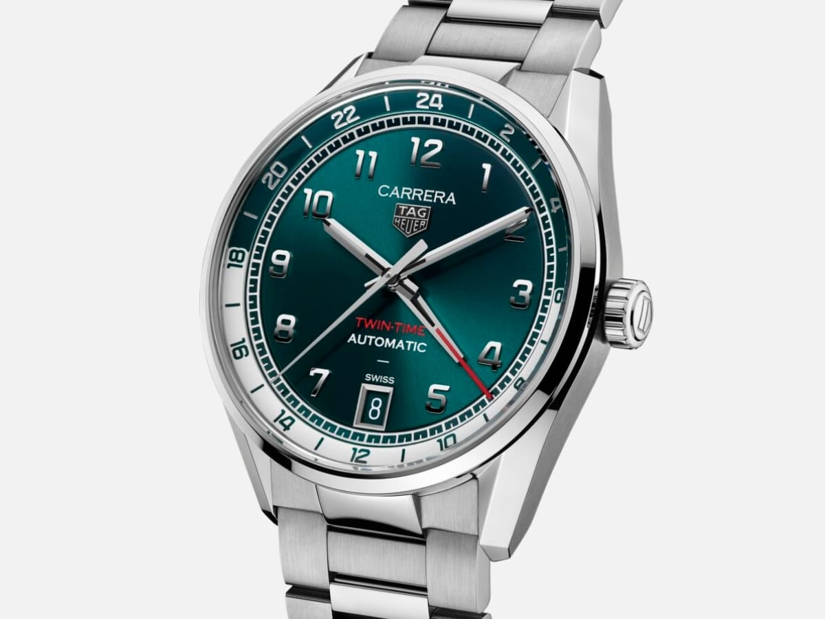 TAG Heuerвыпустил несколько новых моделей, изеленый циферблат этой модели — абсолютный победитель. Он выглядит намного лучше вживую, чем на фото.Что-то среднее между британским гоночным зеленым и цветом бензина. Я не могу представить более подходящий оттенок для этих спортивных часов от официального хронометриста Формулы-1.Наличие функции GMT, выделенной ярко-красным цветом, который также используется для обозначения TWIN-TIME на циферблате, делает эти часы еще более привлекательными.Когда его представили, я немного удивился, но я рад, что он существует.