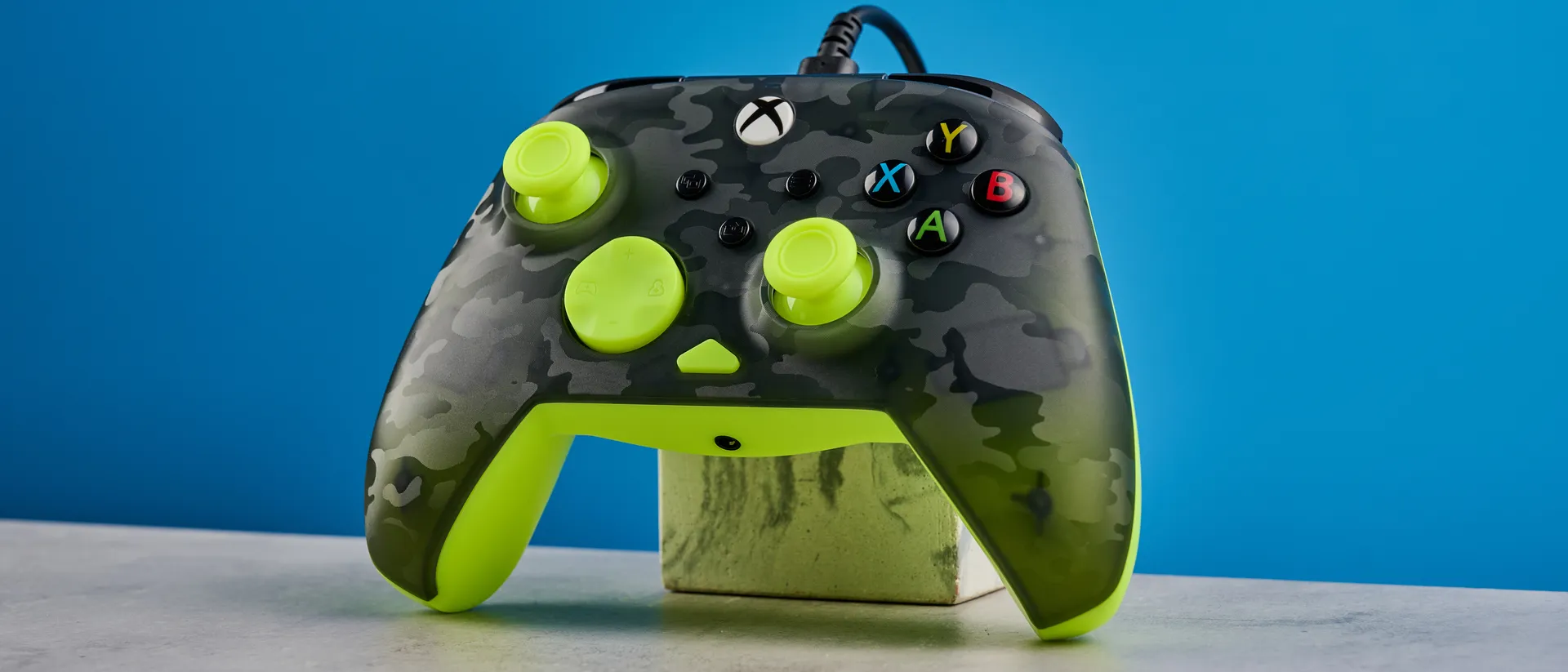 Есть ещё несколько цветовых решений на выбор, но мне больше всего нравятся камуфляжные. Передняя панель покрыта — как вы уже догадались — камуфляжной плёнкой, что отличает его от скучных старых геймпадов, таких как GameSir Cyclone 2 ($49). Однако здесь нет RGB-подсветки, и если для вас это важно, я бы порекомендовал вместо этого приобрести Turtle Beach Afterglow Wave.