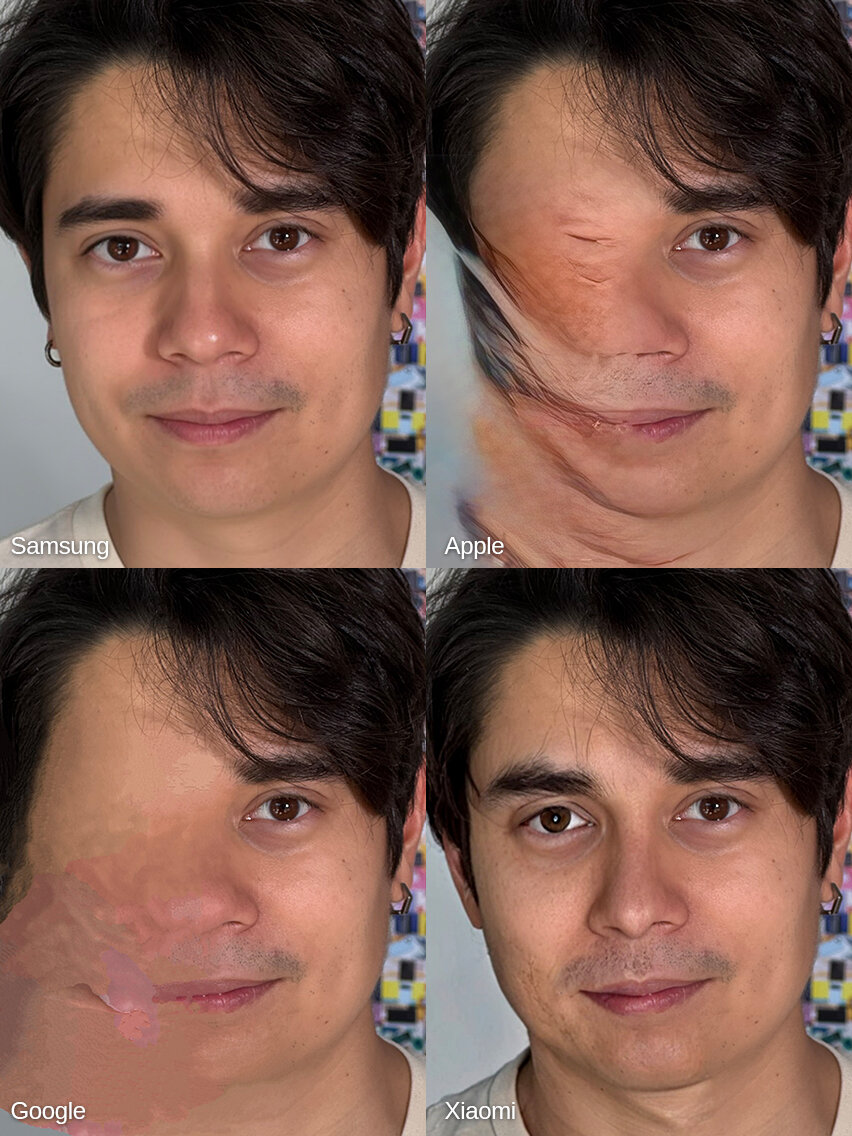 Samsung справился со следующим тестом лучше — на самом деле, он справился лучше всех. Xiaomi отстаёт не сильно, но сгенерировал вторую половину лица Уилла нереалистично. Apple и Google, которым не удаётся генерировать человеческие черты, снова выбыли из игры.