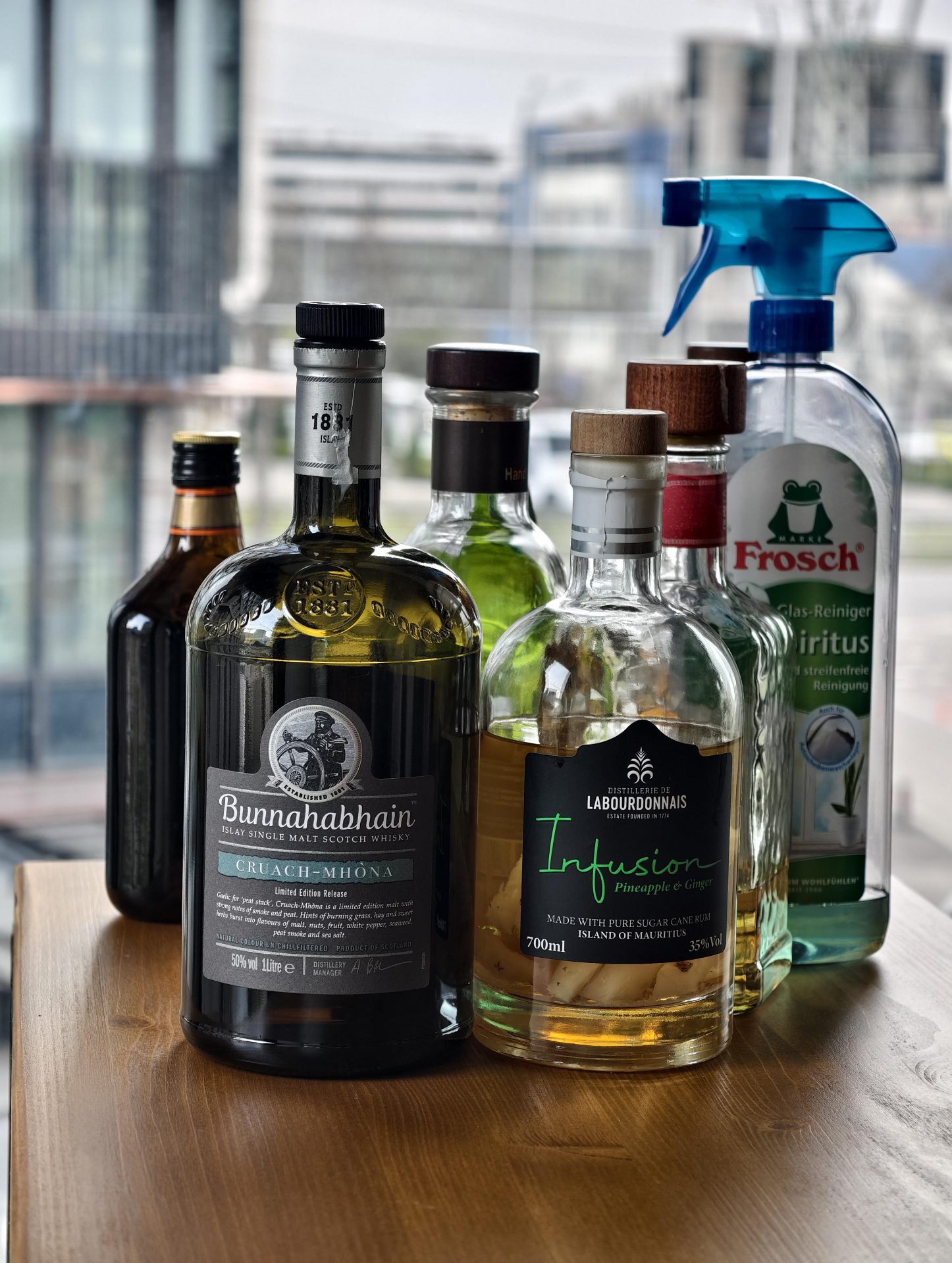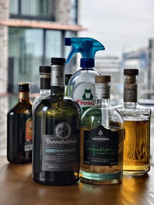 Последние два изображения очень сложные — нужно убрать один предмет из стопки, в данном случае — бутылку средства для мытья окон среди бутылок со спиртным.