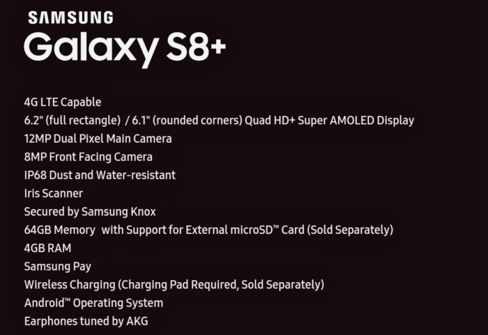 И характеристики Galaxy S8+ тоже | фото: Evan Blass |