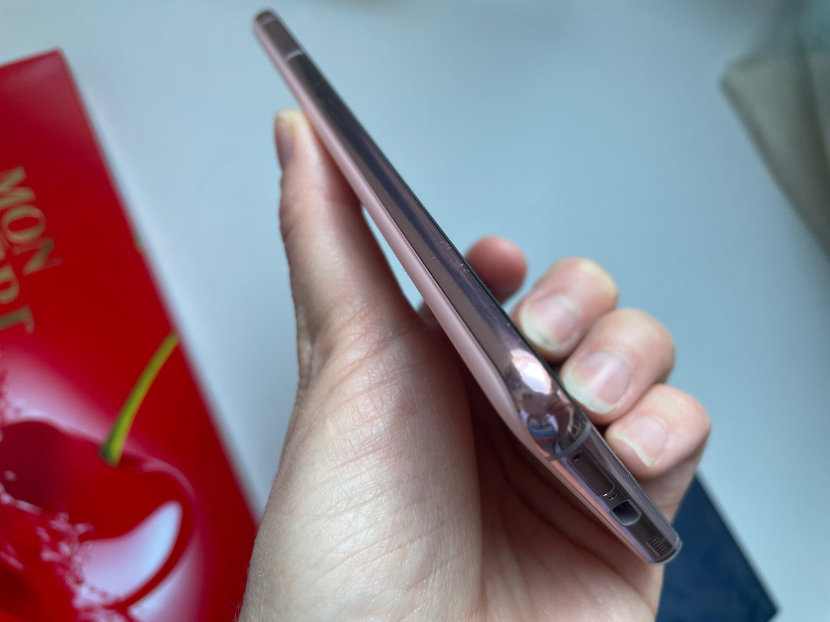 В руку Samsung Galaxy S21 ложится удобно, при диагонали 6,2 дюйма и узких рамках нет никаких проблем дотянуться до любого угла экрана даже обладатели небольшой ладони.