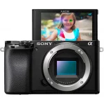 Эта камера пришла на смену легендарной A6000, и одним из самых значительных улучшений стали возможности видеосъёмки. A6100 может снимать в формате 4K и имеет разъём для микрофона, что делает её отличным выбором для ведения видеоблогов, что стало возможным благодаря откидному поворотному ЖК-экрану.