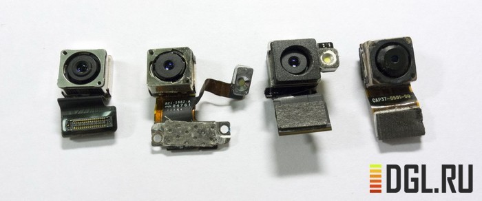 Слева направо основные камеры iPhone 5s, iPhone 5, iPhone 4s, iPhone 3GS