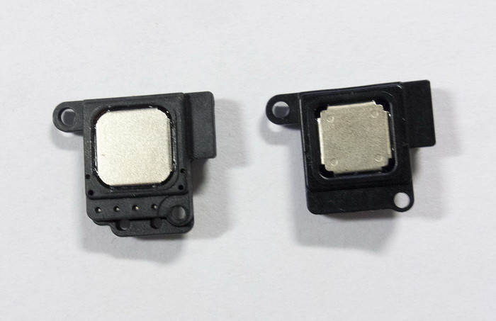 Полифонический динамик у 5s (на фото слева) стал немного меньше, а заодно уменьшился и корпус. Звук от этого тише и хуже не стал. Цена, надо думать, изменится не сильно (в «пятерке» его меняли за 3 000 рублей).