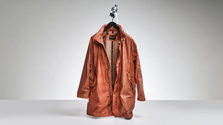 Куртка с металлической изоляцией, изначально разработанной НАСА, изготовлена из оцинкованного полиамидного рипстопа, покрытого металлическими частицами и гальваническим покрытием, чтобы по своим свойствам напоминать металл, но при этом не жертвовать комфортом.
