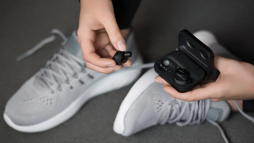 Есть беспроводные, а есть по-настоящему беспроводные, и топовые Jabra Elite Sport относятся именно к ним. Помимо беспроводной конструкции, главной особенностью этих наушников для бега является технология Hear Through, которая позволяет управлять тем, как наушники пропускают или фильтруют окружающий шум – всего лишь быстрым нажатием кнопки. Это отлично подходит для того, чтобы оставаться начеку, если вы бегаете на улице.