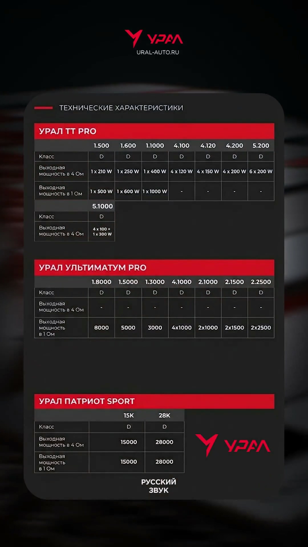 Для фанатов автозвука бренд показал настоящего монстра — усилитель «ПАТРИОТ SPORT». Устройство выдает до 28 000 Вт мощности. Создатели применили современную гибридную схемотехнику, чтобы система работала стабильно даже на пиковых нагрузках. Техника «Урал» часто побеждает на турнирах по автозвуку в дисциплинах SPL, и такие усилители позволят собирать еще более безумные проекты.