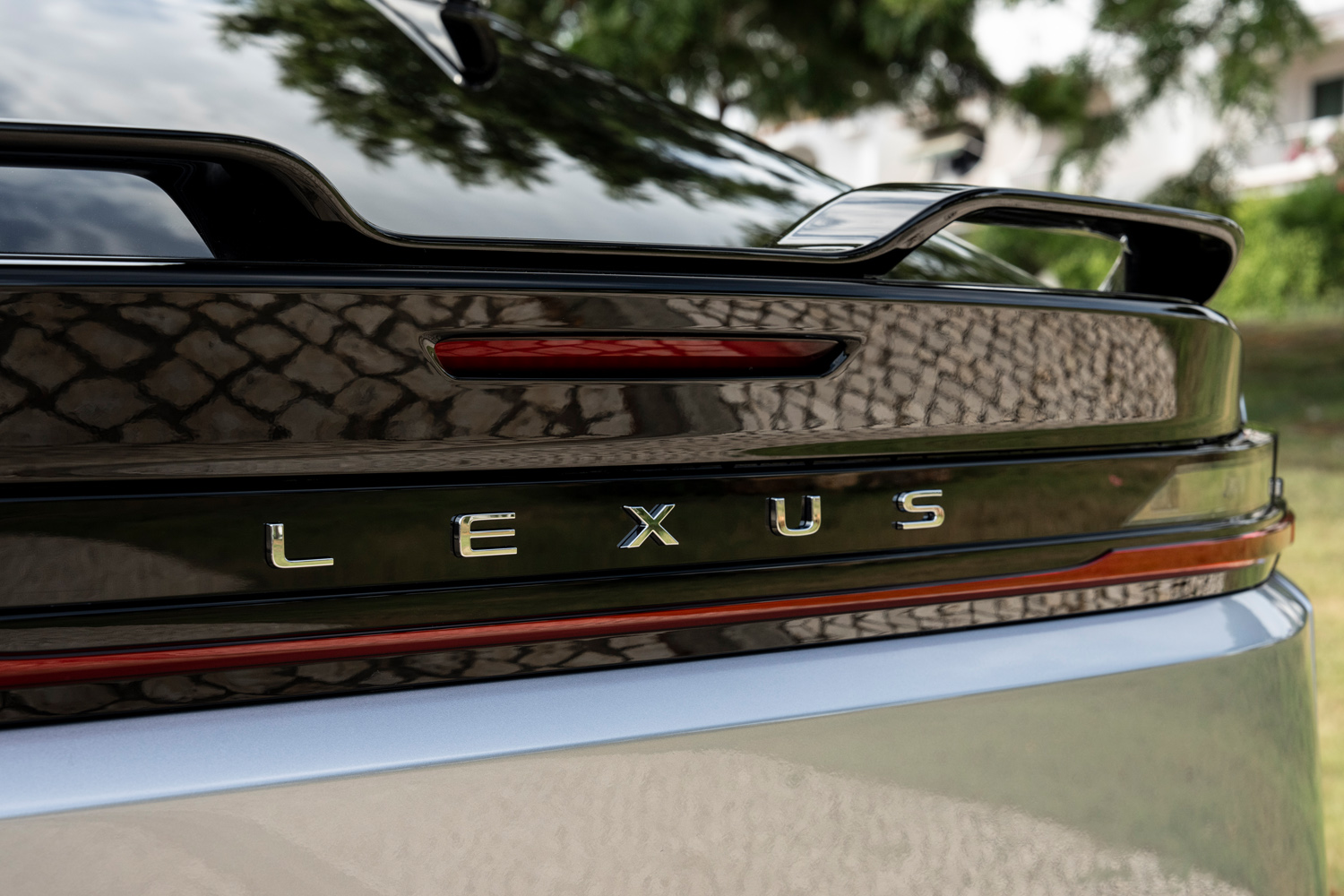 Двухцветная окраска может прийтись по вкусу не всем, но я считаю, что контрастный чёрный цвет в средней части капота и на линии крыши подчёркивает динамичность этого автомобиля. Спереди видна характерная решётка радиатора Lexus и угловатые фары. Сзади автомобиль выглядит на удивление высоким, в основном благодаря чёрному цвету нижней части бампера.