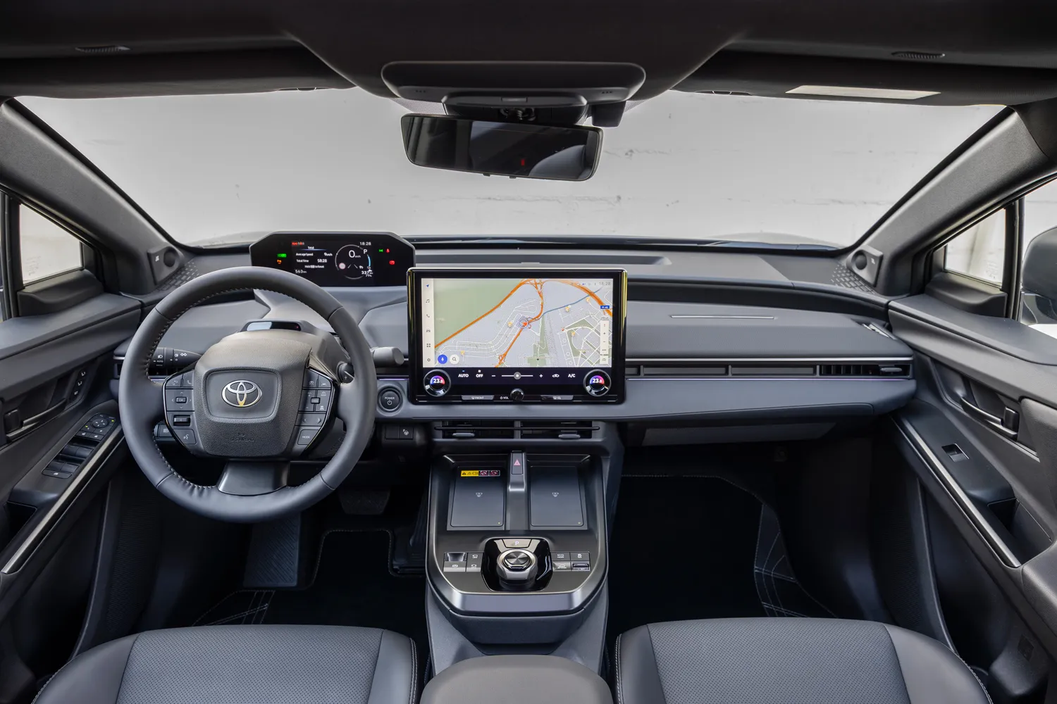 Модель bZ4X, впервые представленная в 2022 году, отличалась странной приборной панелью, которая, казалось, была рассчитана на рулевое колесо, а не на обычный штурвал. Теперь, когда рулевое колесо не используется, приборная панель была переработана.