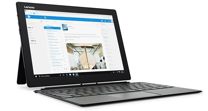 Следующая новинка – Windows-планшет Lenovo Miix 720, наследник Miix 700. Модель образца 2017 года получила 12-дюймовый экран с разрешением 2880 х 1920 точек, аккумулятор на 8 часов автономной работы, интерфейс Thunderbolt 3 и съемную клавиатуру с подсветкой. На задней панели устройства расположена ножка для установки на любой горизонтальной поверхности.