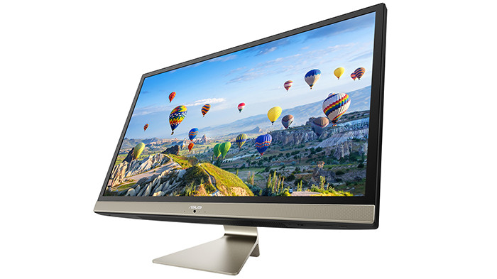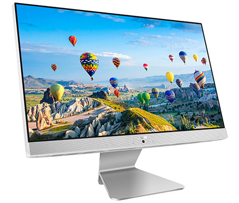 Начнем с компьютеров-моноблоков. Их два: первый называется ASUS Vivo AiO V272, второй – ASUS Vivo AiO V222. Первая новинка располагает 27-дюймовым сенсорным экраном со 100-процентным охватом цветового пространства sRGB, процессором Intel Core i7 (восьмое поколение) и видеокартой nVidia GeForce MX150.