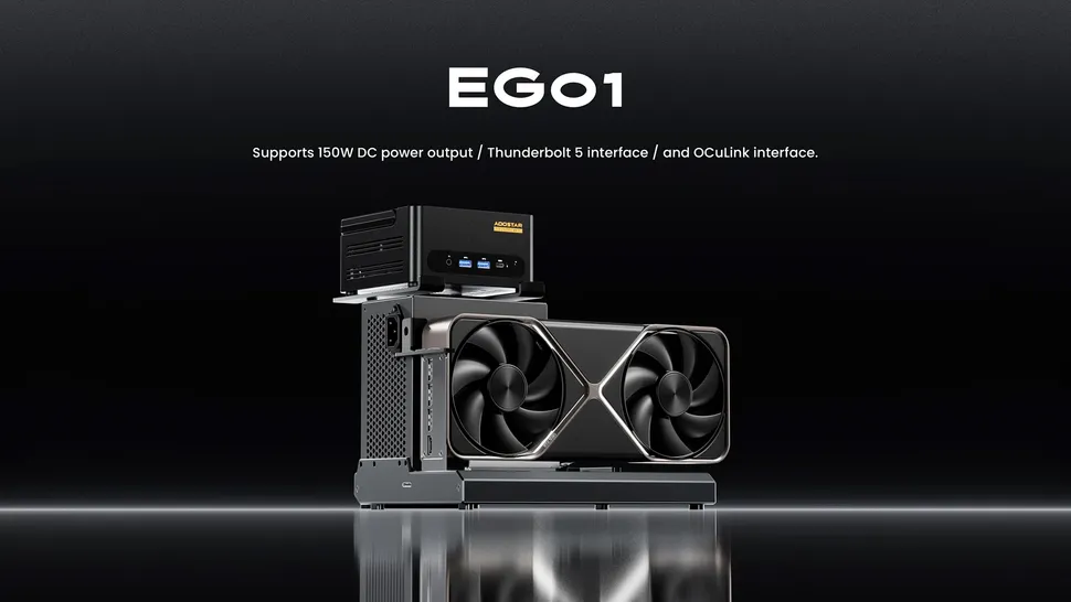 О док-станции было опубликовано не так много информации, однако Notebookcheck удалось раздобыть подробные сведения об EG01. Но изданию удалось выяснить, что док-станция поддерживает интерфейс Thunderbolt 5 и совместима с OCuLink, что делает её одной из первых док-станций, поддерживающих оба стандарта подключения. Thunderbolt 5 и OCuLink обеспечивают интерфейс PCIe 4.0 x4 для подключения хост-системы к видеокарте, предлагая наилучшие возможности подключения, которые только можно найти в док-станциях eGPU.