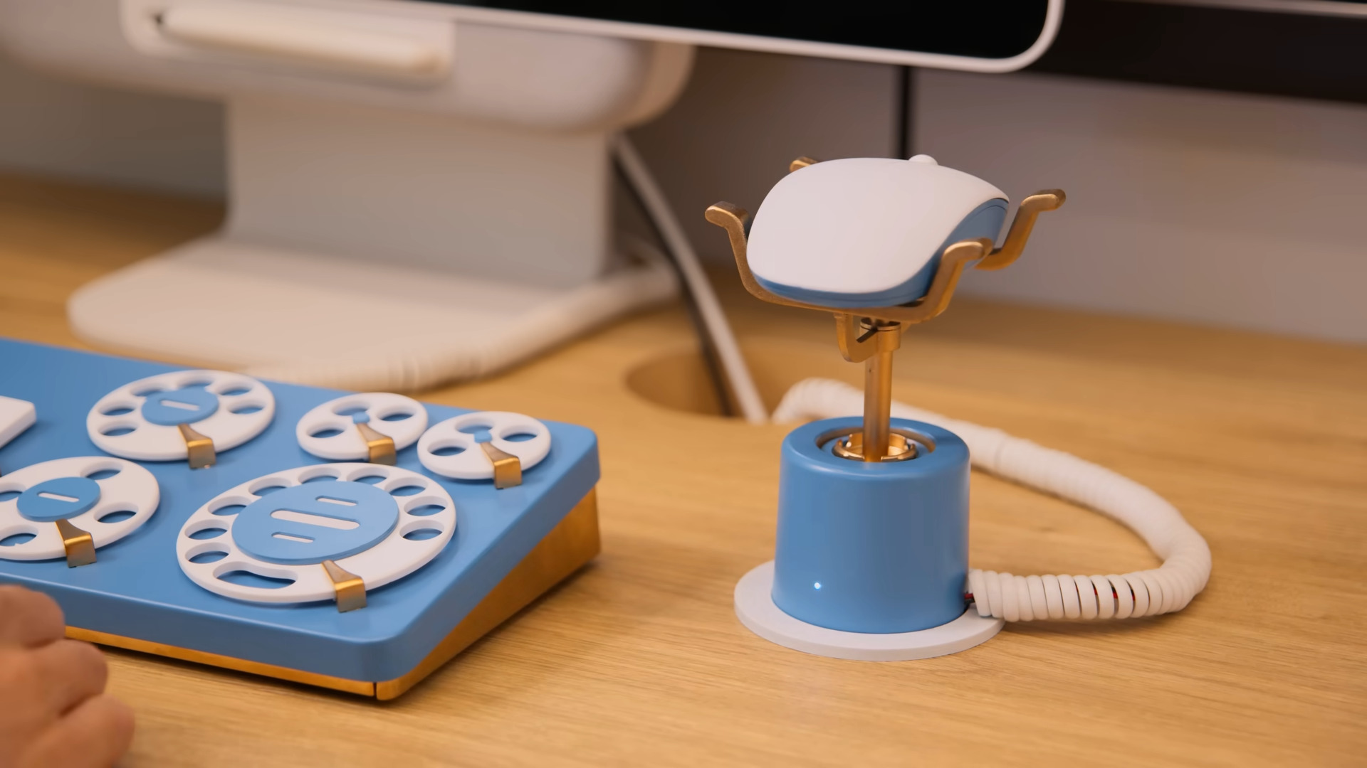 Подставка для мыши в стиле эпохи дисковых телефонов — ещё одно интересное предложение. Команда разработчиков предполагает, что этот аксессуар можно использовать для интуитивно понятного управления присутствием во время видеоконференций. Если поставить мышь на эту подставку, все звонки будут приостановлены, а видеокамера и микрофон отключатся на время вашего перерыва.