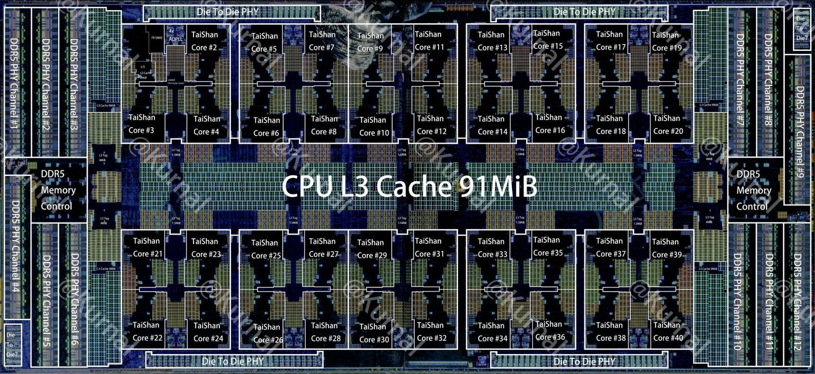 Кроме того, каждый кристалл внутри Kunpeng 930 имеет 91 МБ кэш-памяти L3 и 2 МБ кэш-памяти L2. Чип также поддерживает 96 линий PCIe с 16-канальным подключением памяти.
