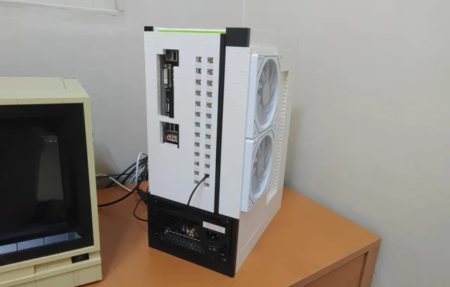 А что, если бы трансформирующийся настольный терминал и корпус для ПК объединились и у них родился бы ребёнок? К счастью, наш любопытный изобретатель предусмотрительно подготовился и уже сделал «корпус для монитора в стиле ретро-компьютеров Commodore». Подробностей об этом проекте мало, но Чой использовал монитор с соотношением сторон 4:3 и поместил его в специальный корпус Lego, в который также можно поместить весь ПК. Спереди также есть USB-концентратор для быстрого доступа. Однако, в отличие от сборки 5600G, в этой есть место для выделенного графического процессора, но Чой пока использует его только в качестве дополнительного монитора.
